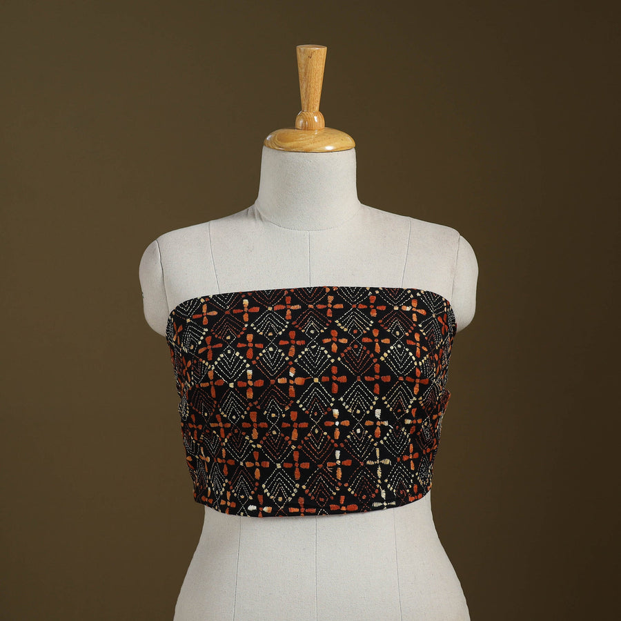 This black cotton bengal kantha stitch blouse piece showcases intricate hand embroidery inspired by the traditional kantha art of West Bengal. Each motif is carefully crafted by skilled artisans, turning it into a wearable piece of heritage. Style it your way with your favourite sarees to add a refined, handcrafted touch, perfect for both festive occasions and everyday elegance.