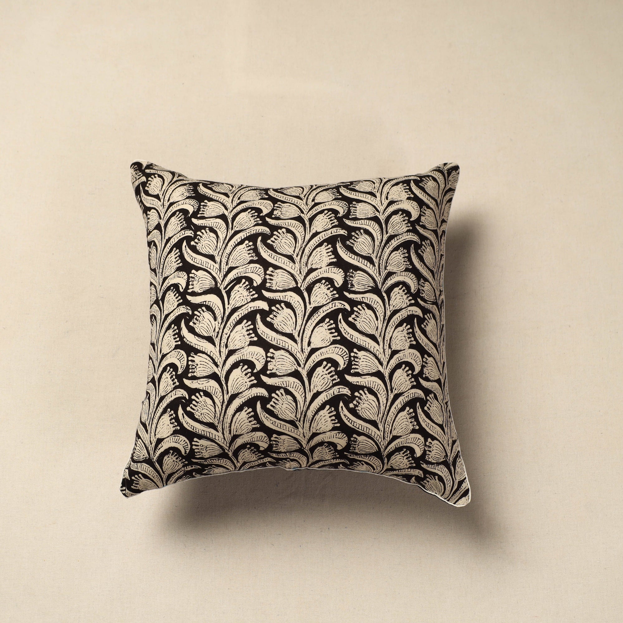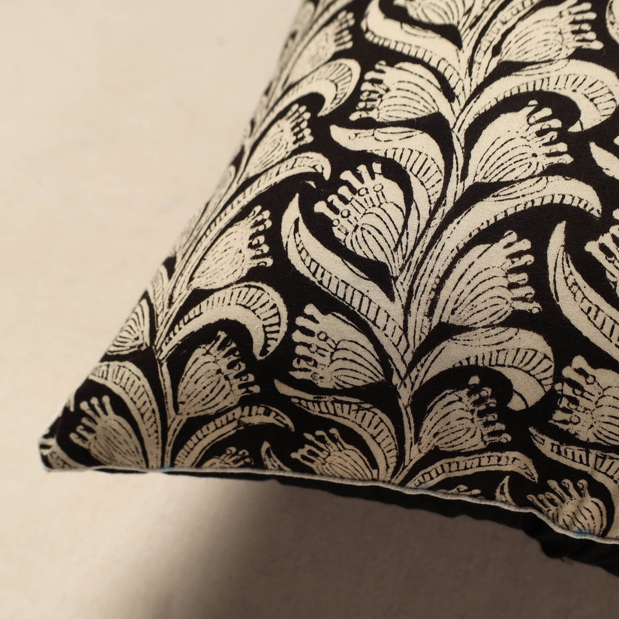 Add a touch of elegance to your home with this black cotton block printed bagru cushion cover featuring intricate bagru block prints. Handcrafted in Rajasthan using natural dyes and traditional mud resist techniques, its a sustainable choice for your decor. Perfect for enhancing sofas or chairs, this durable cover blends heritage-inspired design with everyday practicality.