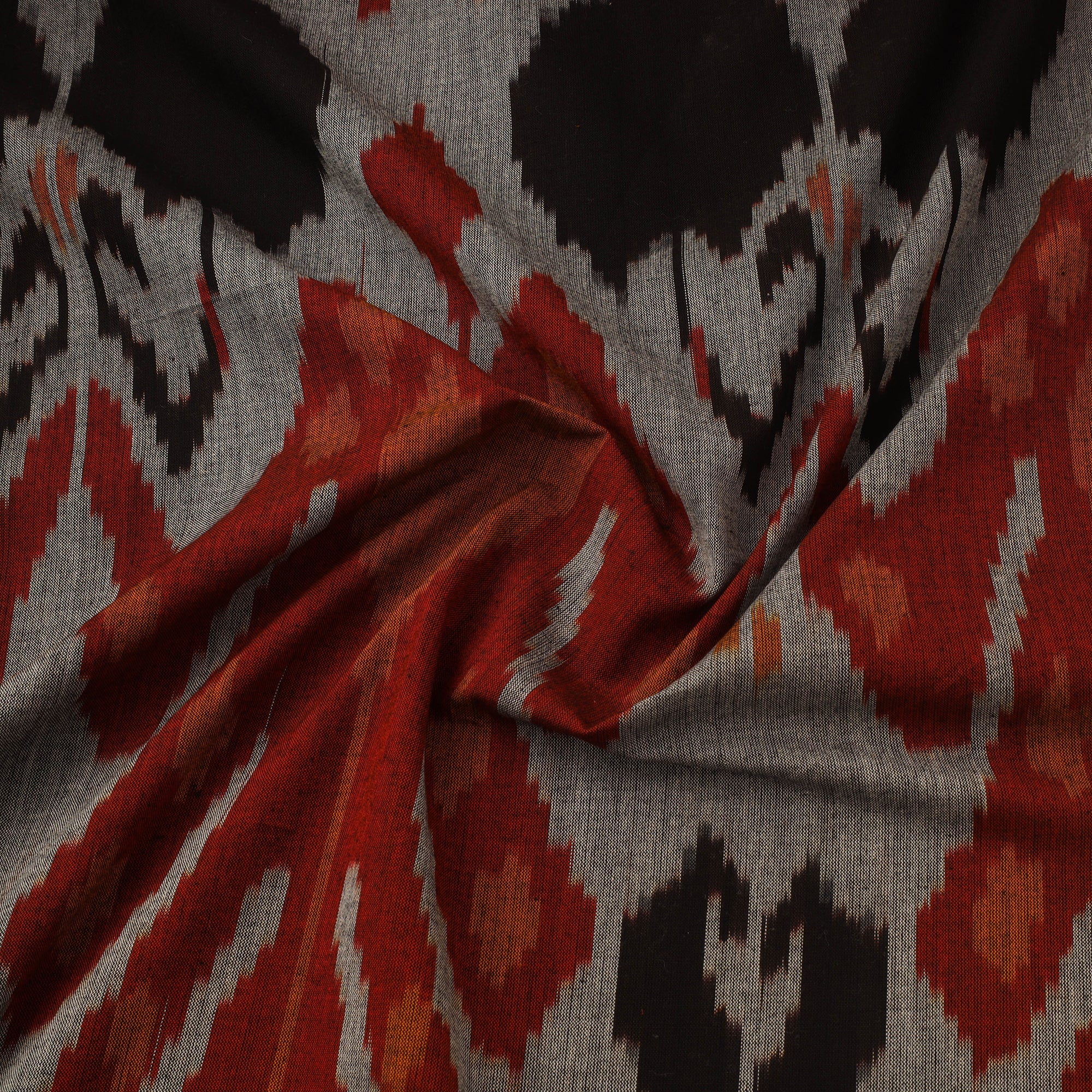 Central asian cotton pochampally ikat fabric, made in Koyyalagudem village by artisan Edem Chandana, celebrates a tradition passed down through four generations. Part of the renowned pochampally ikat tie-dye legacy, the yarns are carefully tied and dyed before weaving to create striking patterns. The fabric beautifully blends weaving techniques with Central Asian design influences, echoing the bold, symmetrical motifs seen in classic Uzbekistan ikats. It can be used for both clothing and home decor.