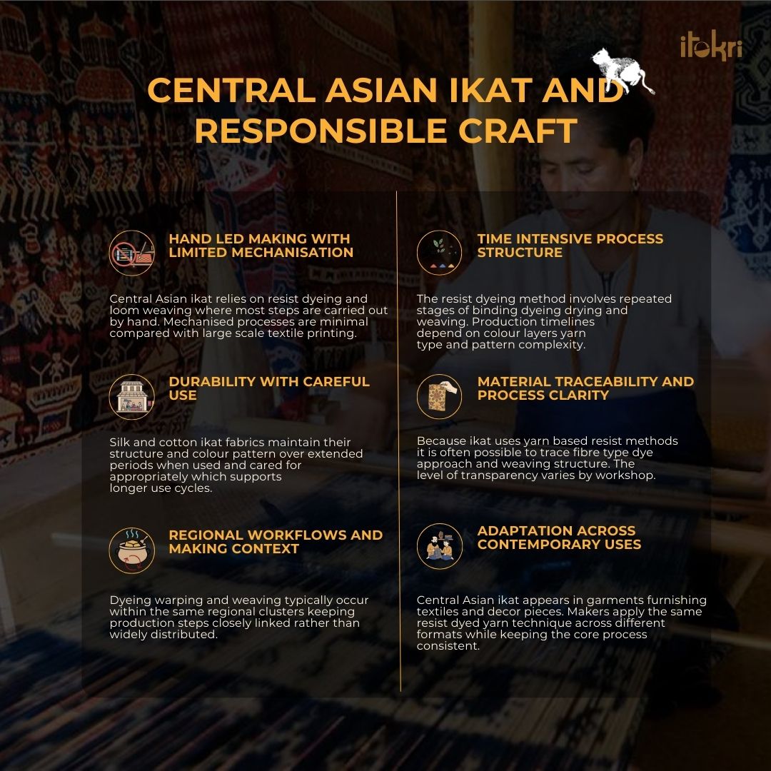 This yellow cotton central asian pochampally ikat fabric from Telangana shows a mix of tradition and beauty. Made with the central asian ikat technique, the threads are tied and dyed before weaving to create colorful and unique patterns. Soft and beautifully patterned, this fabric is perfect for making sarees, kurtas, or home decor items, adding a touch of charm and culture to any project.