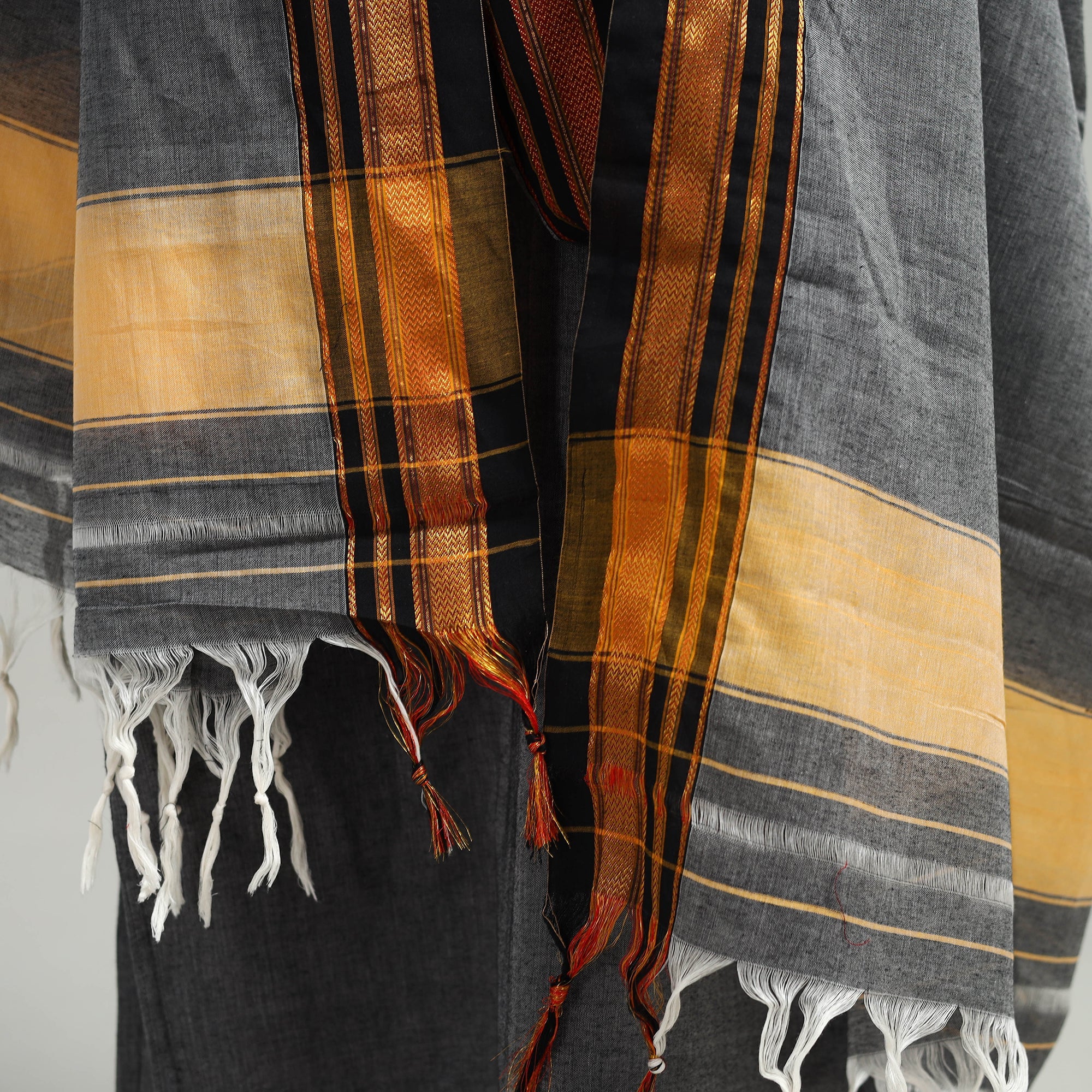 Black - 3pc Cotton Unstitched Dharwad Dress Material with Border 16