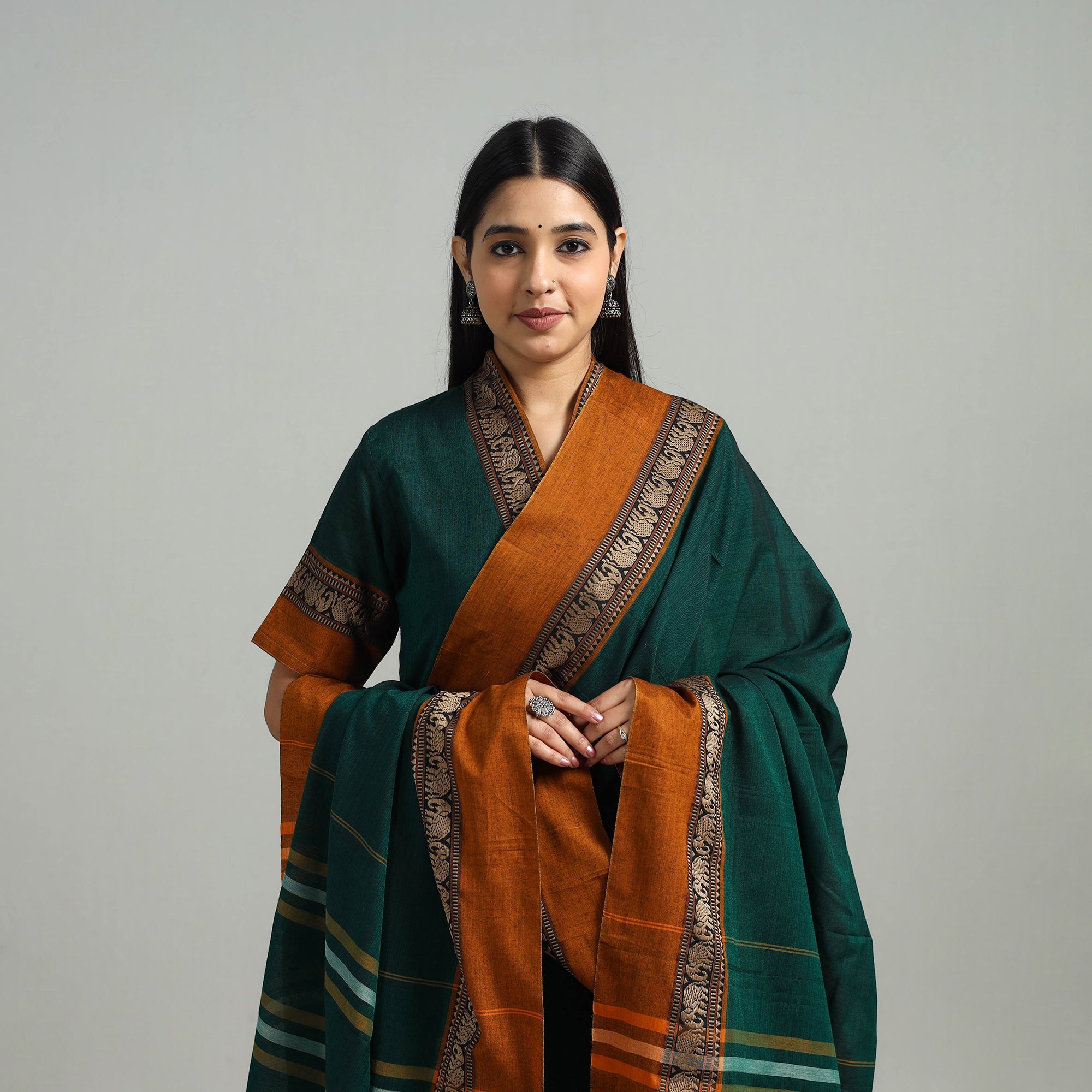 Green - 3pc Cotton Unstitched Dharwad Dress Material with Border 50