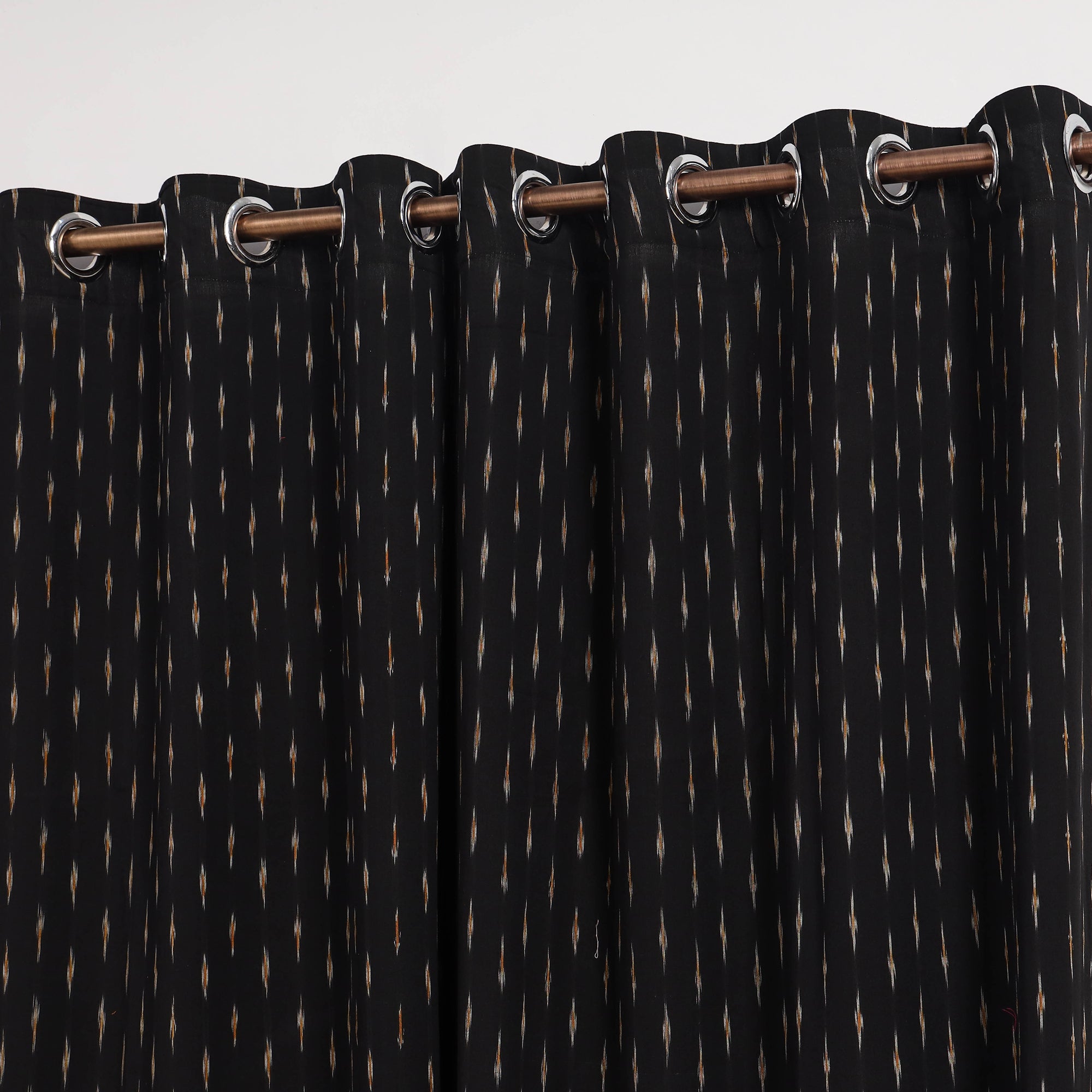 This black pochampally ikat woven cotton door curtain adds an ethnic touch to any room, making it a perfect addition to your home decor collection. Originating from Telangana, the Ikat craft is renowned for its vibrant geometric patterns. Before weaving, the threads are carefully dyed to create these intricate designs. Indian Ikat is a fabric admired by fashion designers worldwide for its artistry and elegance.