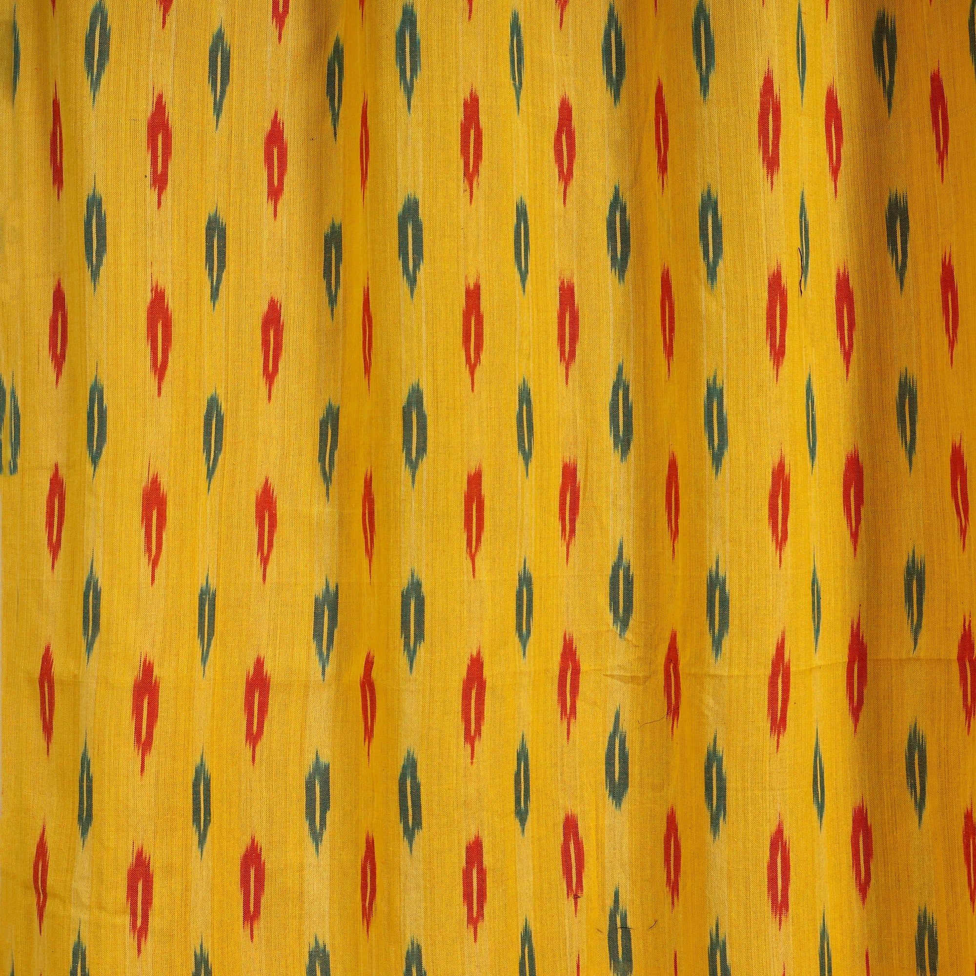 This yellow pochampally ikat woven cotton door curtain adds an ethnic touch to any room, making it a perfect addition to your home decor collection. Originating from Telangana, the Ikat craft is renowned for its vibrant geometric patterns. Before weaving, the threads are carefully dyed to create these intricate designs. Indian Ikat is a fabric admired by fashion designers worldwide for its artistry and elegance.