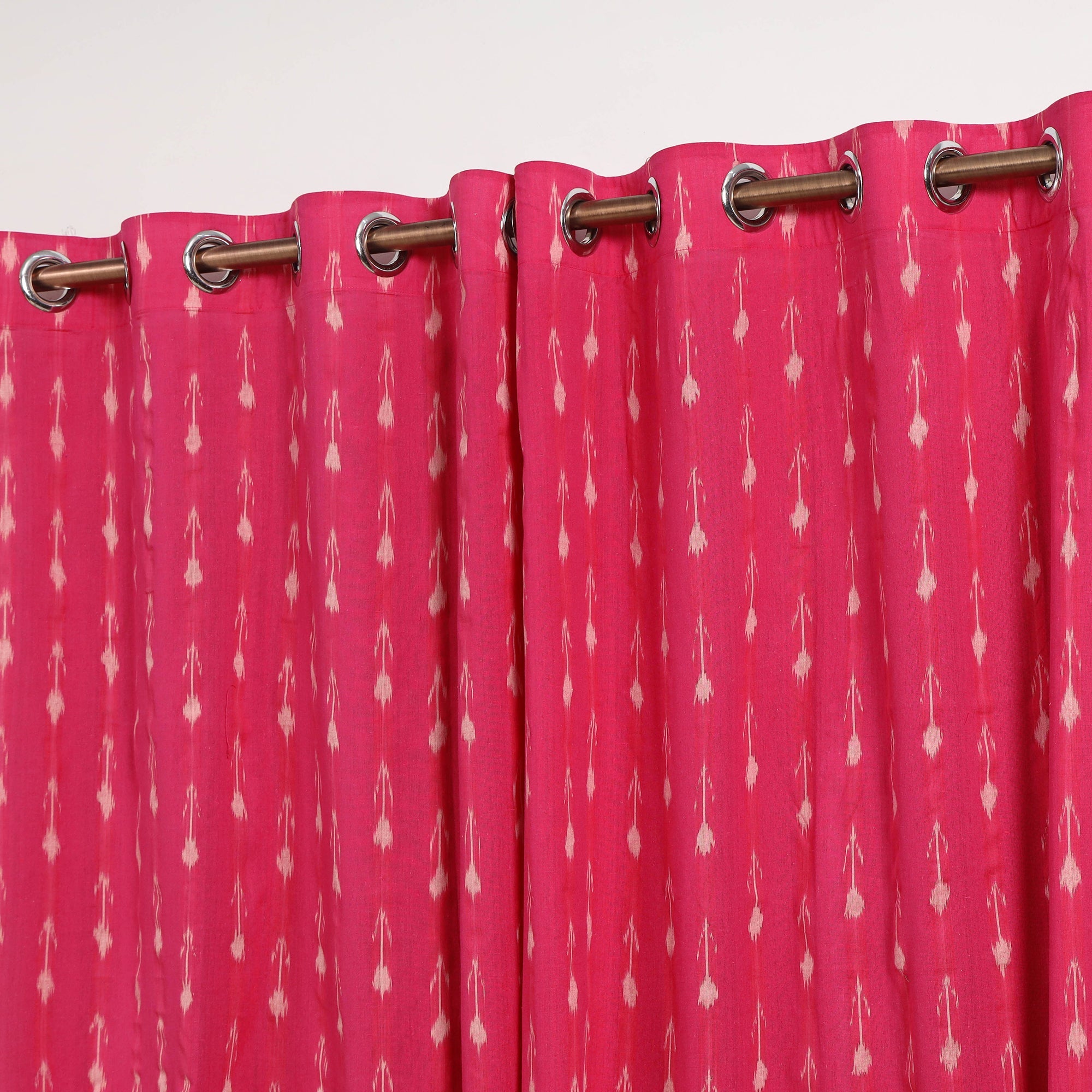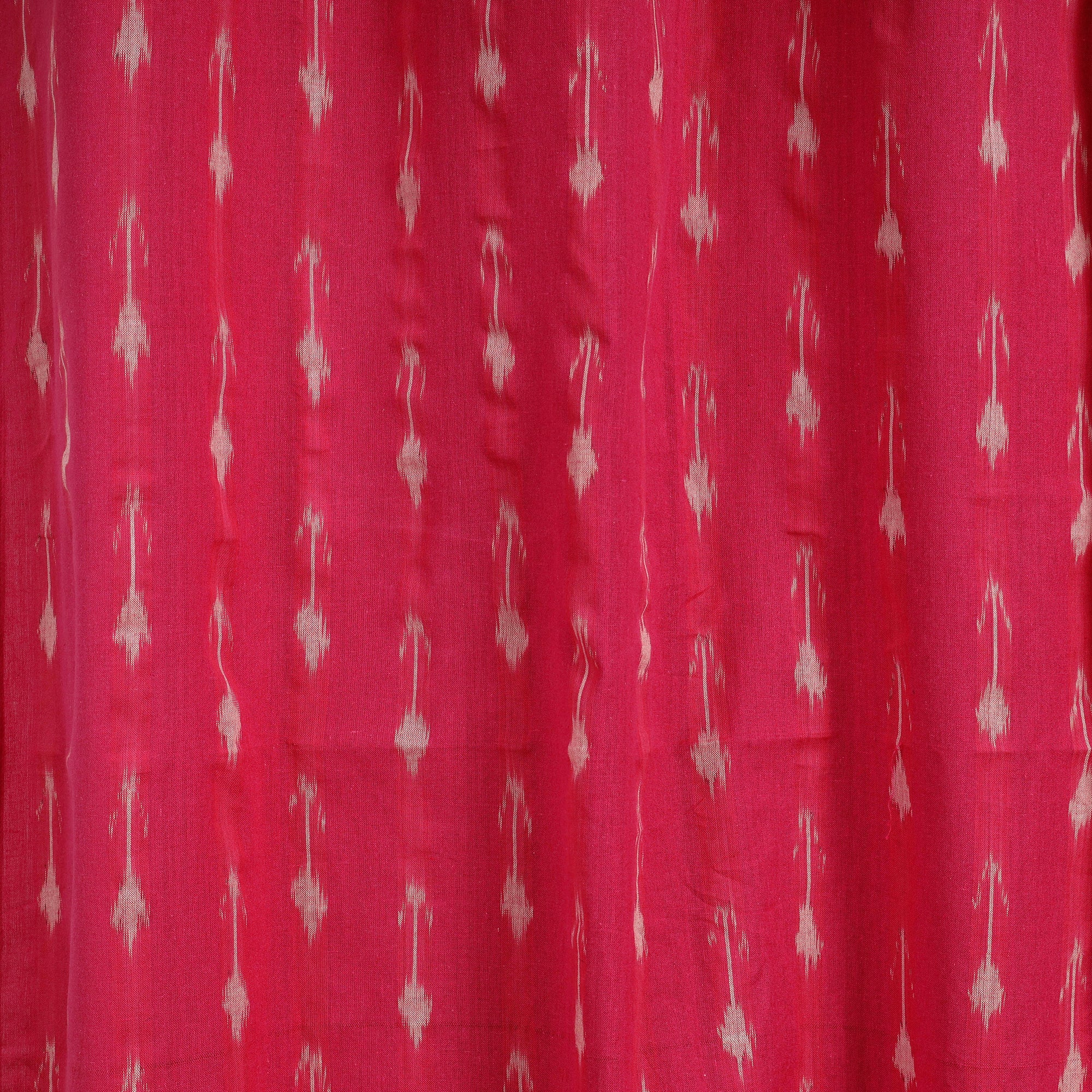 This pink pochampally ikat woven cotton door curtain adds an ethnic touch to any room, making it a perfect addition to your home decor collection. Originating from Telangana, the Ikat craft is renowned for its vibrant geometric patterns. Before weaving, the threads are carefully dyed to create these intricate designs. Indian Ikat is a fabric admired by fashion designers worldwide for its artistry and elegance.
