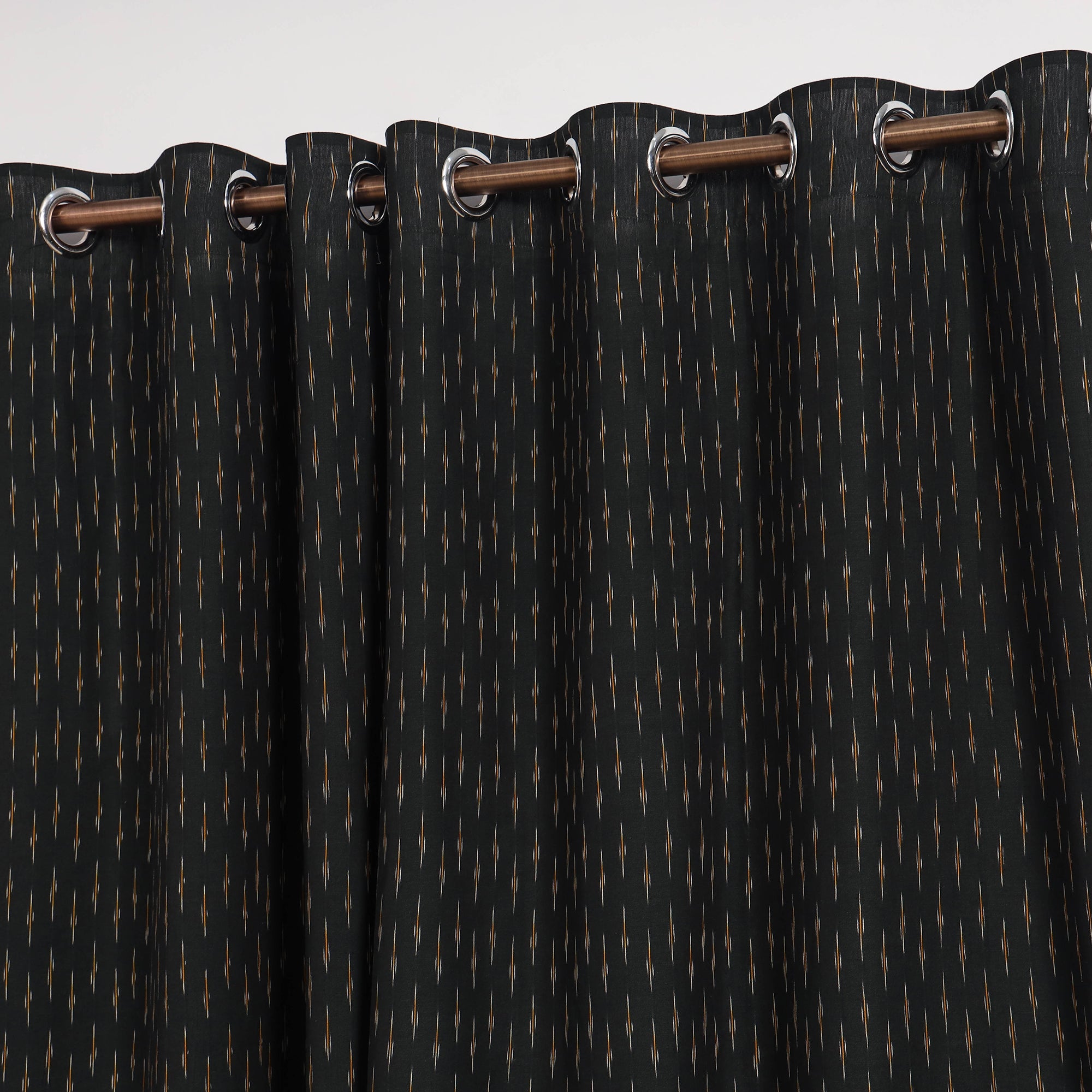 This black pochampally ikat woven cotton door curtain adds an ethnic touch to any room, making it a perfect addition to your home decor collection. Originating from Telangana, the Ikat craft is renowned for its vibrant geometric patterns. Before weaving, the threads are carefully dyed to create these intricate designs. Indian Ikat is a fabric admired by fashion designers worldwide for its artistry and elegance.