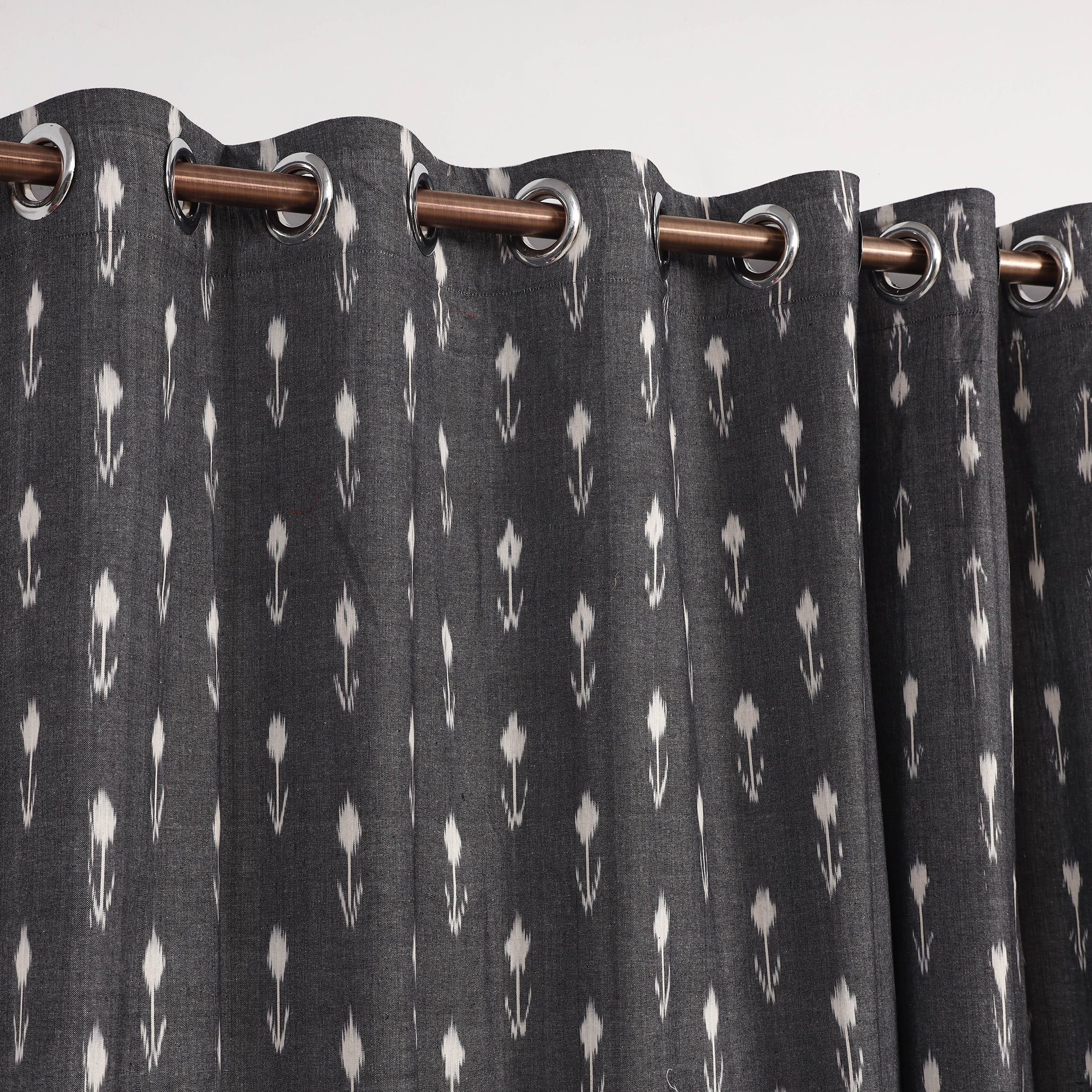 This grey pochampally ikat woven cotton door curtain adds an ethnic touch to any room, making it a perfect addition to your home decor collection. Originating from Telangana, the Ikat craft is renowned for its vibrant geometric patterns. Before weaving, the threads are carefully dyed to create these intricate designs. Indian Ikat is a fabric admired by fashion designers worldwide for its artistry and elegance.