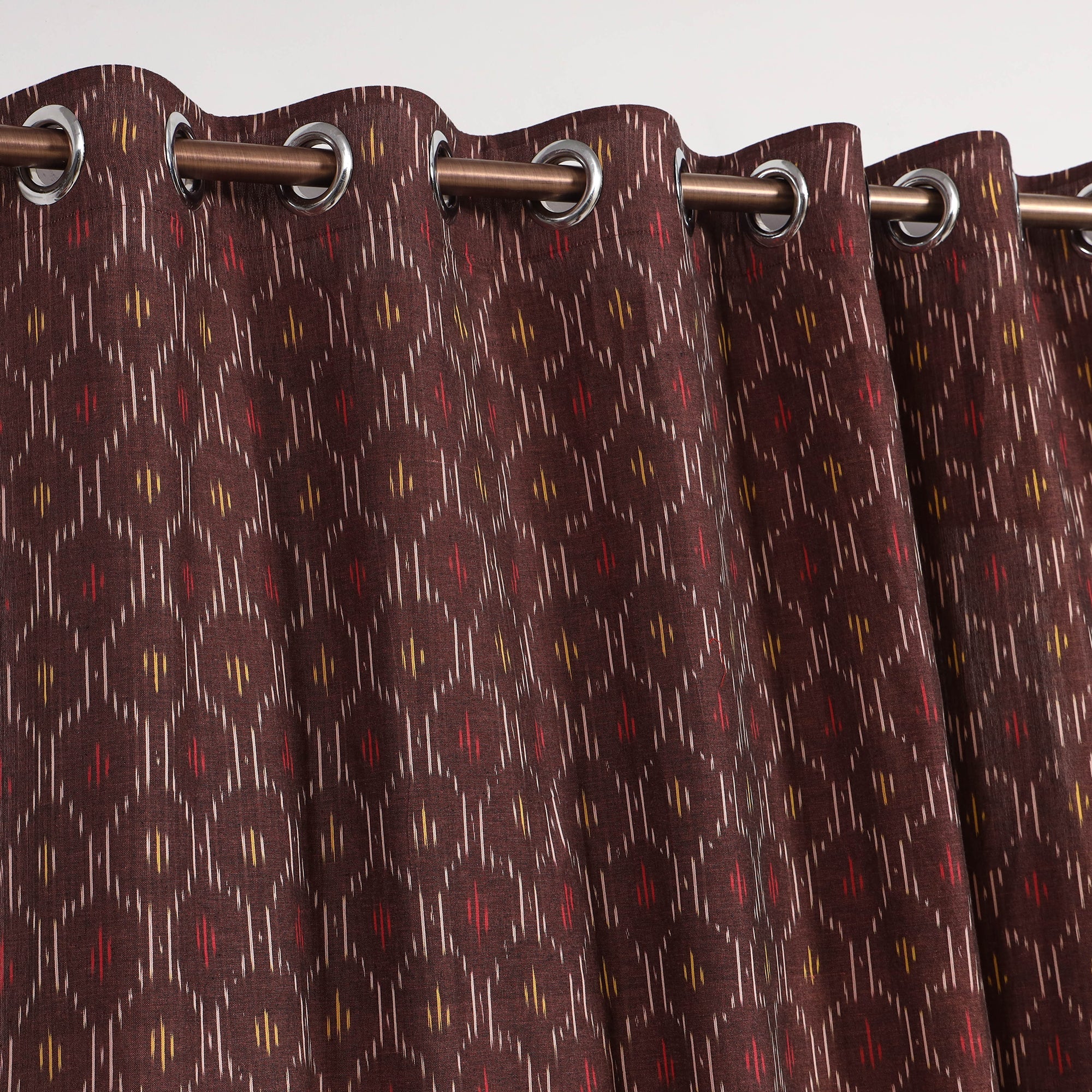 This brown pochampally ikat woven cotton door curtain adds an ethnic touch to any room, making it a perfect addition to your home decor collection. Originating from Telangana, the Ikat craft is renowned for its vibrant geometric patterns. Before weaving, the threads are carefully dyed to create these intricate designs. Indian Ikat is a fabric admired by fashion designers worldwide for its artistry and elegance.