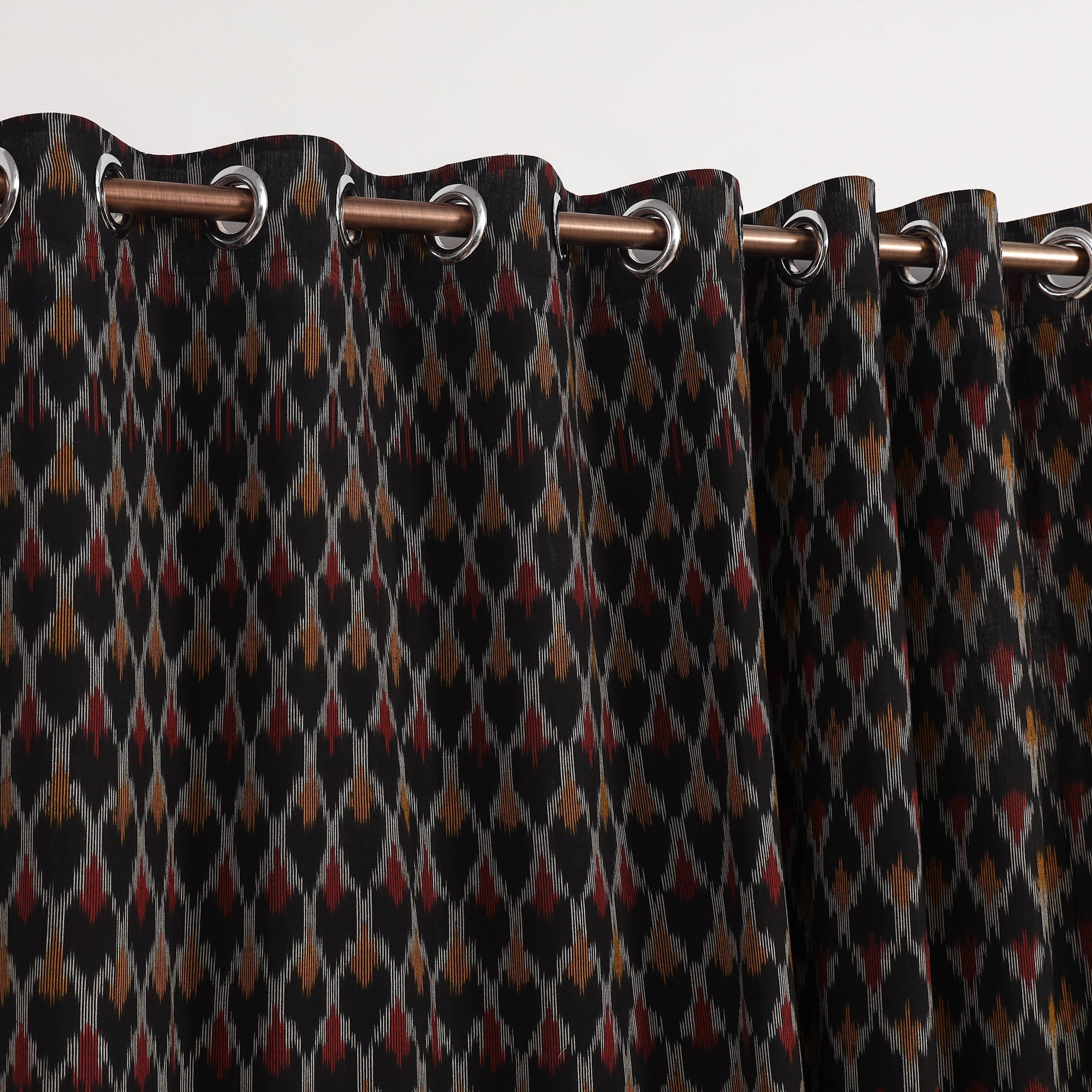 Black - Cotton Door Pochampally Ikat Curtain (7 x 3 Feet) (Single Piece) 64