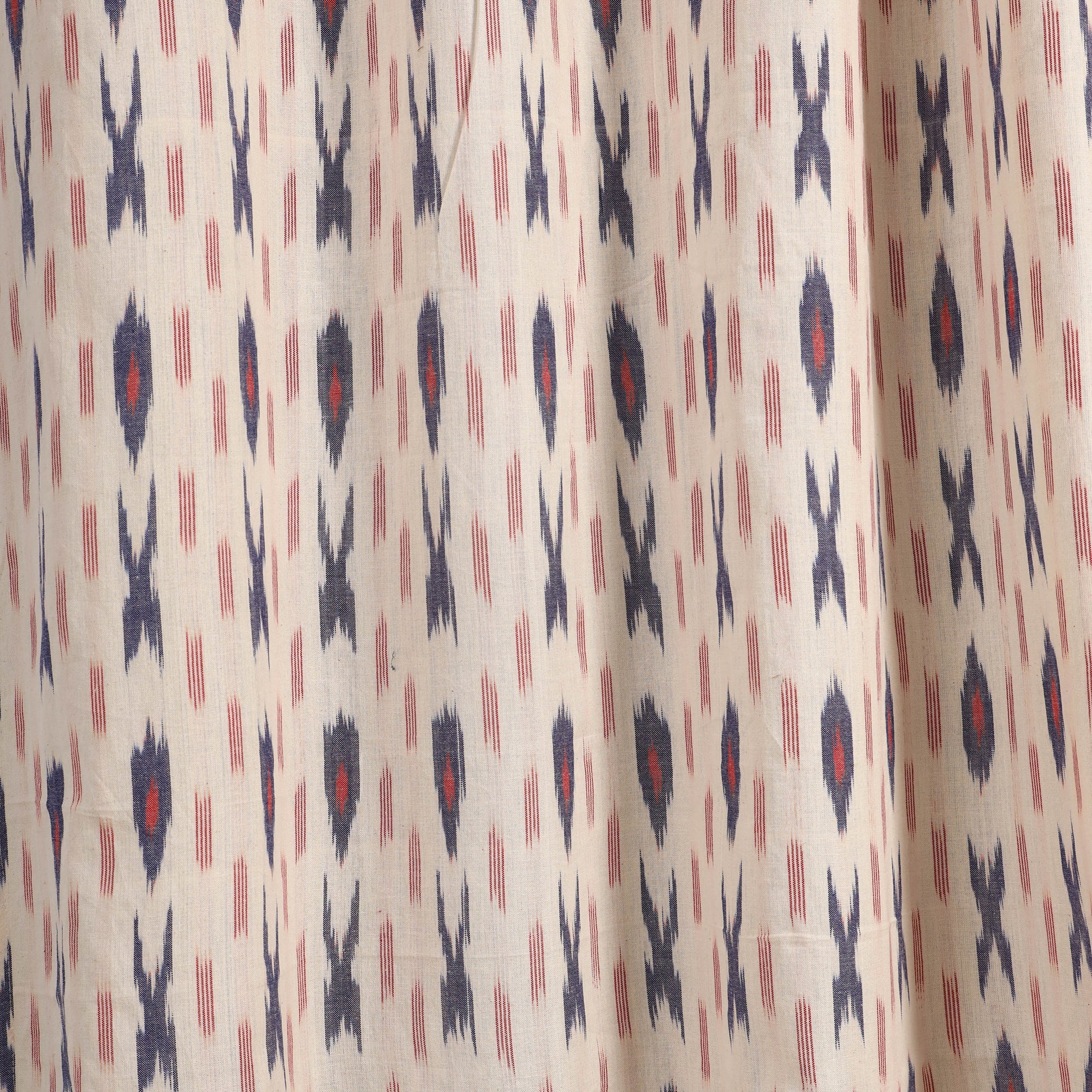 This white pochampally ikat woven cotton door curtain adds an ethnic touch to any room, making it a perfect addition to your home decor collection. Originating from Telangana, the Ikat craft is renowned for its vibrant geometric patterns. Before weaving, the threads are carefully dyed to create these intricate designs. Indian Ikat is a fabric admired by fashion designers worldwide for its artistry and elegance.