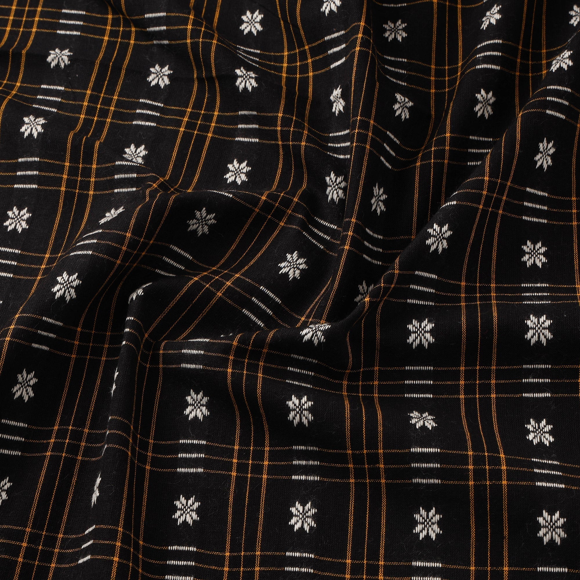 Black cotton embroidery sambalpuri fabric from Odisha, made using cotton and dyed with chemical dyes. The embroidery is done using machine techniques, giving the fabric a neat and consistent finish. Breathable and comfortable, this fabric is easy to stitch and suitable for kurtas, dresses, and home decor projects.