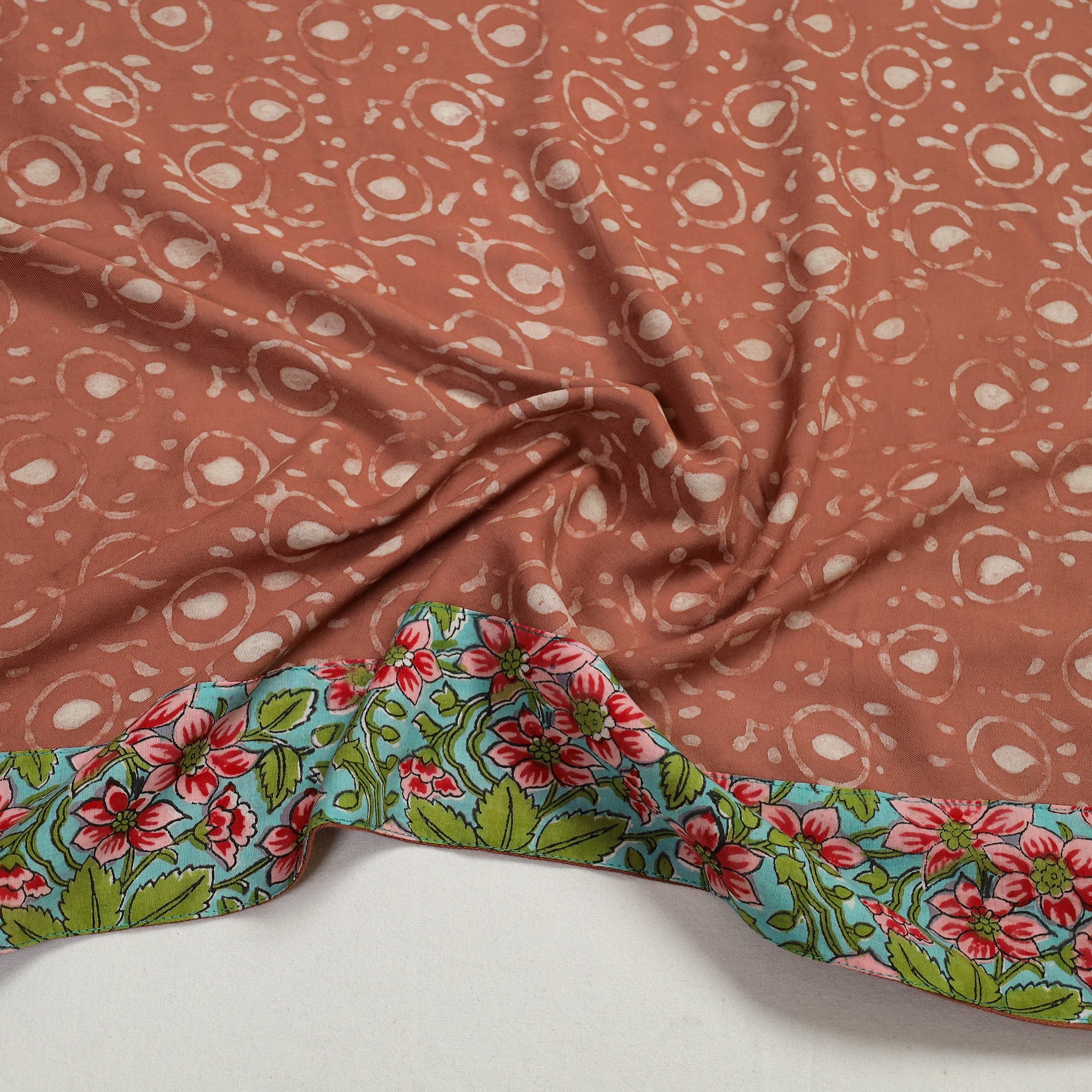Brown cotton hand batik print brown blouse piece, featuring intricate wax-resist dyeing techniques. Made from soft, breathable cotton, this fabric showcases unique patterns and vibrant colors, created through traditional Batik artistry. Lightweight and comfortable, its perfect for pairing with sarees, adding an artistic and timeless charm to ethnic wear.