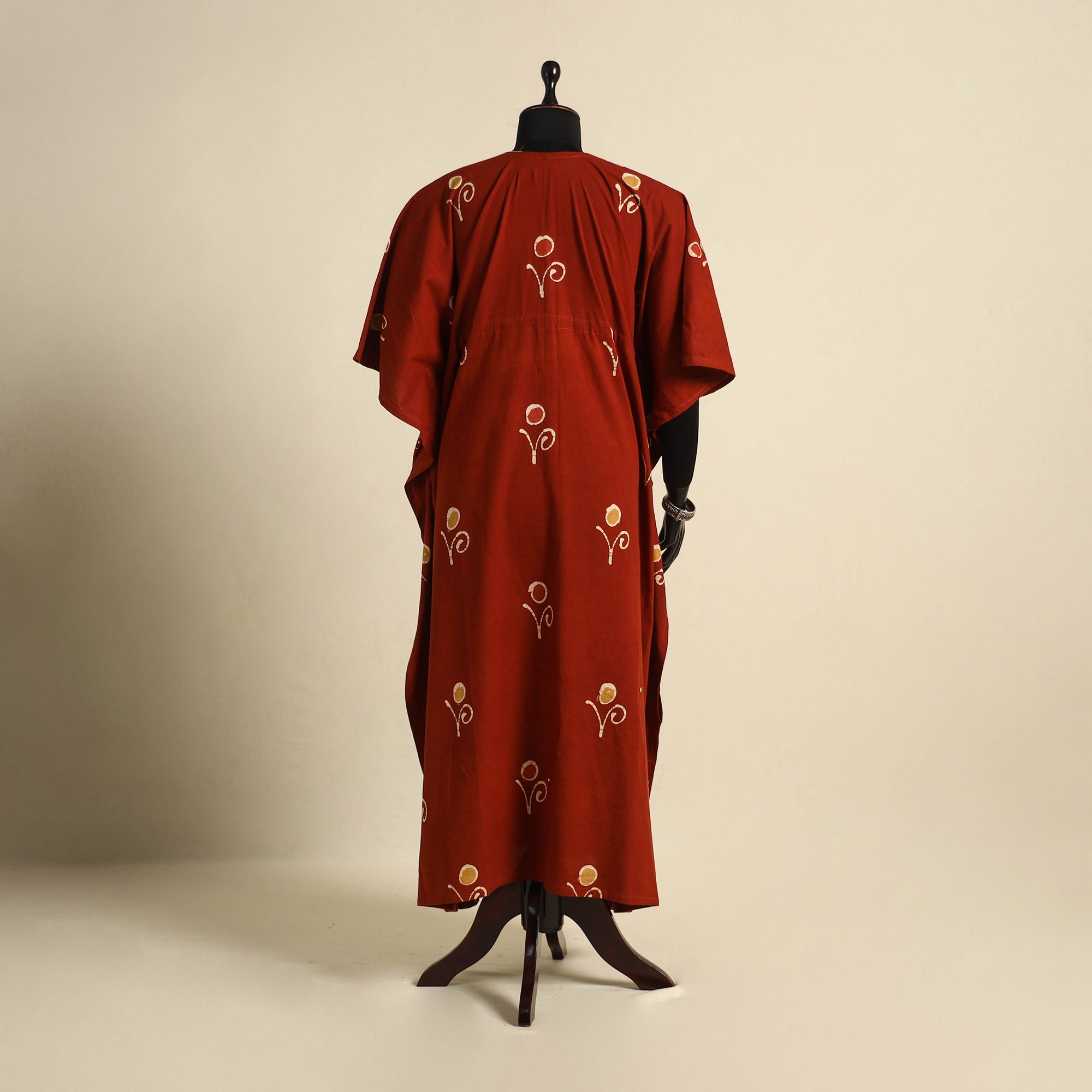 | Material | This red cotton long kaftan features batik block print, created with the traditional wax-resist dyeing technique. Designed with flowing sleeves and an adjustable drawstring waist, it combines comfort with timeless style. The loose fit allows easy movement, while the soft cotton fabric keeps it breathable and lightweight. A perfect blend of tradition and ease, this kaftan is ideal for relaxed wear, offering a customized fit and a graceful look. |