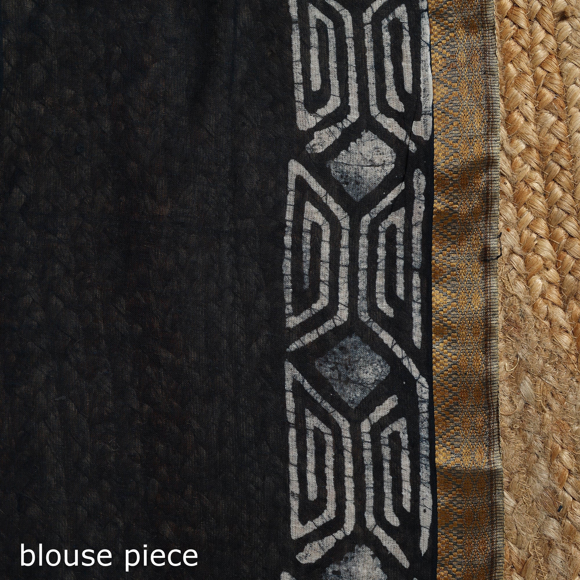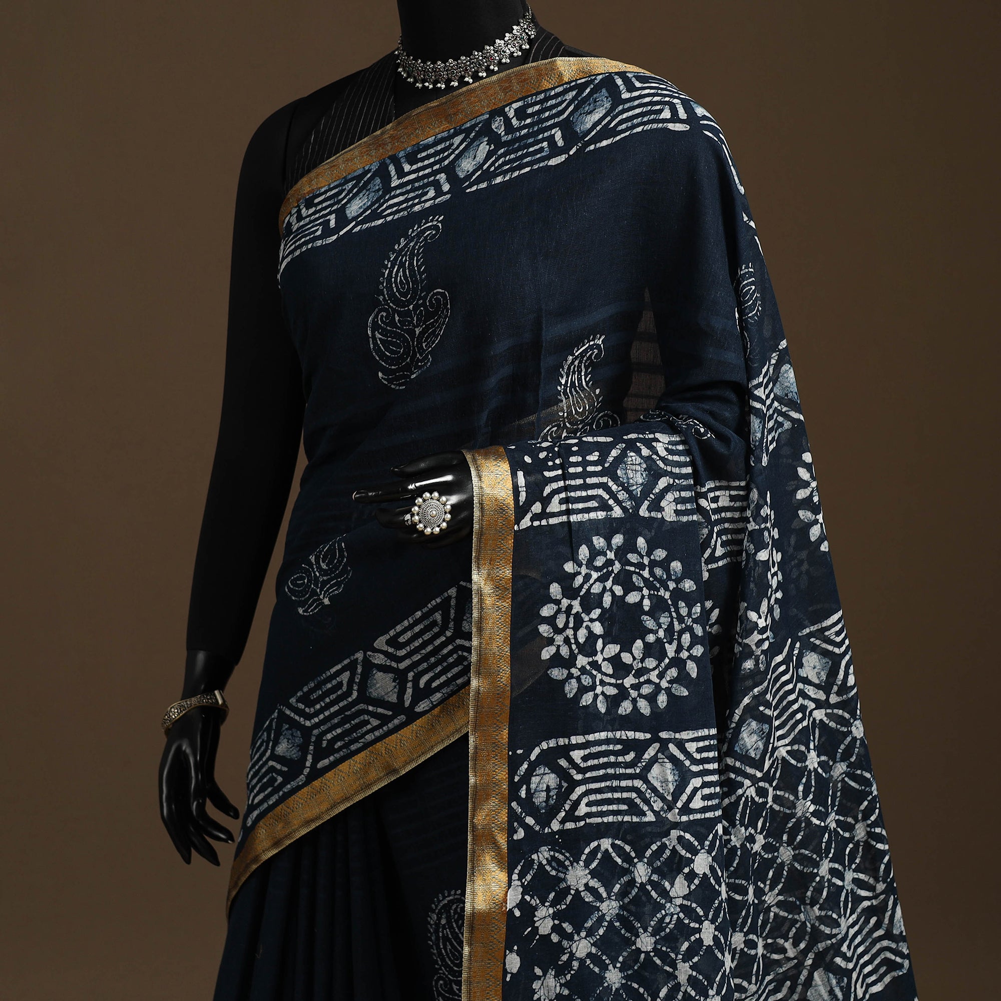 Step into timeless elegance with this blue cotton batik saree adorned with a classic zari border. Created using the intricate wax-resist batik method, the fabric breathes effortlessly for day-long comfort. Paired with a matching blouse piece, it suits festive occasions, cultural events, or everyday graceful dressing.