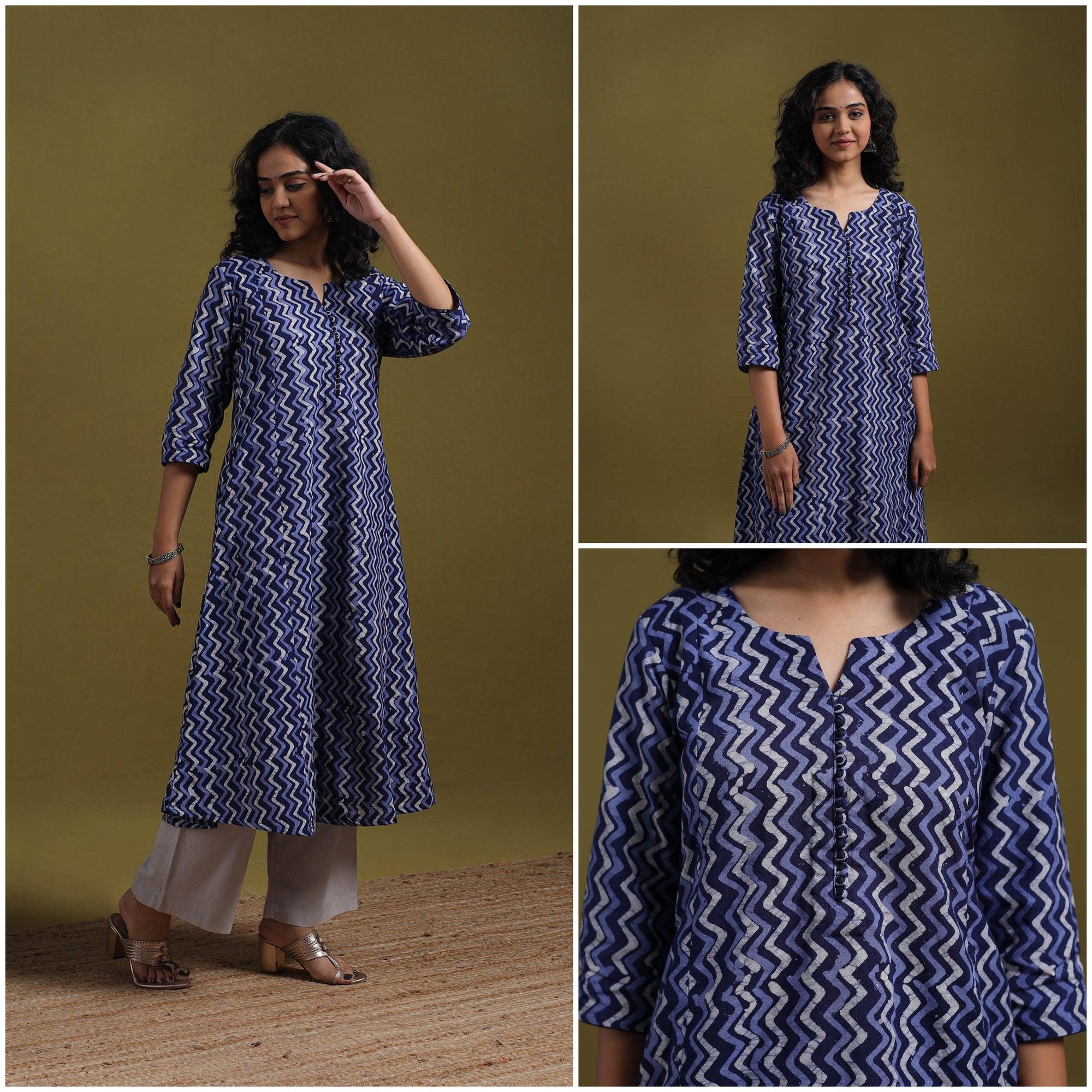 Hand block batik print a-line kurta is a perfect mix of tradition and comfort. Made using the batik dyeing technique, where wax and dye create beautiful patterns, each kurta has its own unique design. The cotton fabric keeps you comfortable throughout the day. With a relaxed fit and a side pocket, it’s ideal for casual outings, office wear or small gatherings.