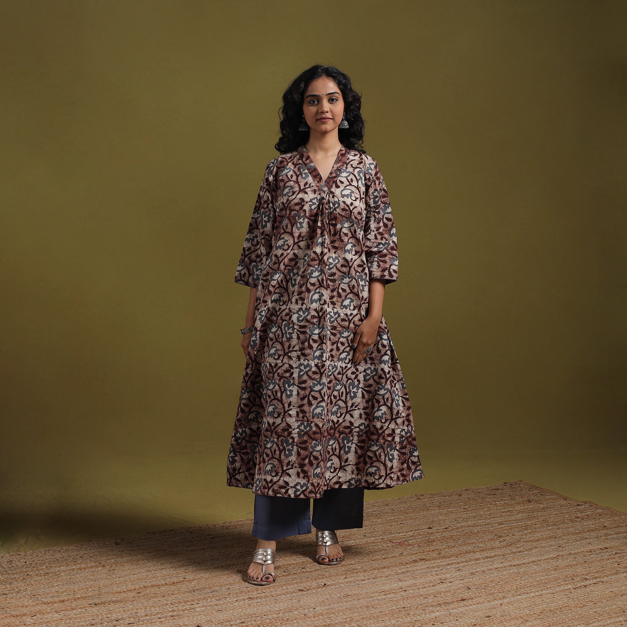 • Brown - cotton hand batik embroidered a-line kurta