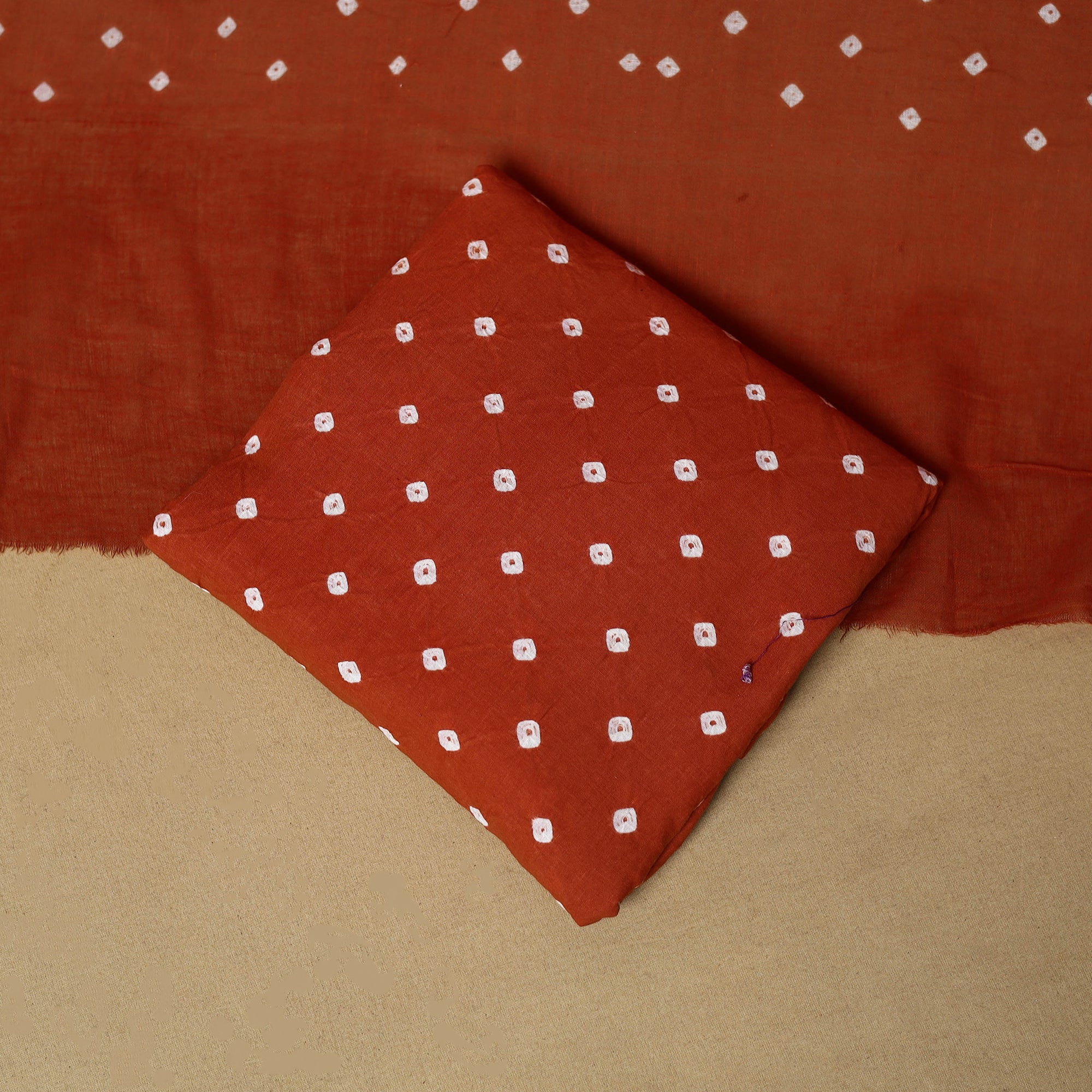 Brown 3pc pure cotton unstitched dress material from the Kutch region, showcasing the area’s renowned batik and bandhani techniques. The set includes a Batik kurta fabric along with a Bandhani bottom and dupatta, creating a harmonious blend of two regional styles. Making it suitable for everyday wear or any occasions.
