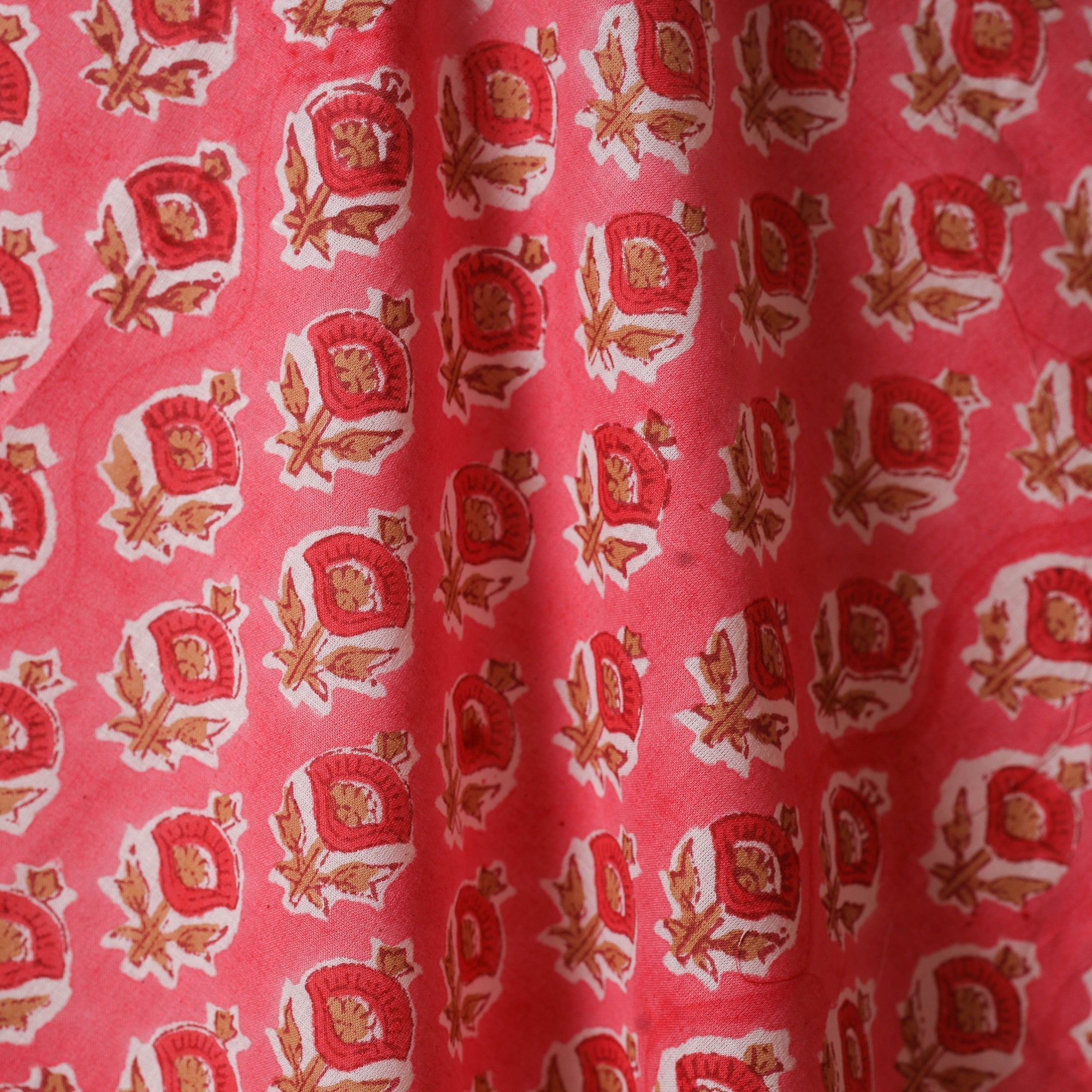 • Pink - cotton hand sanganeri fabric 02 - handcrafted