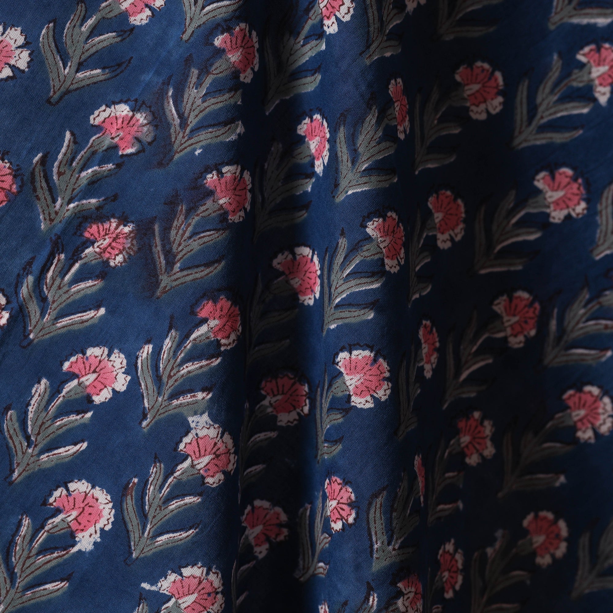 Blue pure cotton sanganeri fabric captures the charm of Rajasthan’s block printing heritage. Crafted using hand-carved wooden blocks, artisans create intricate floral patterns. Perfect for making kurtas, dresses, tunics or charming home accents like cushions and curtains, this soft, airy cotton ensures both style and comfort.