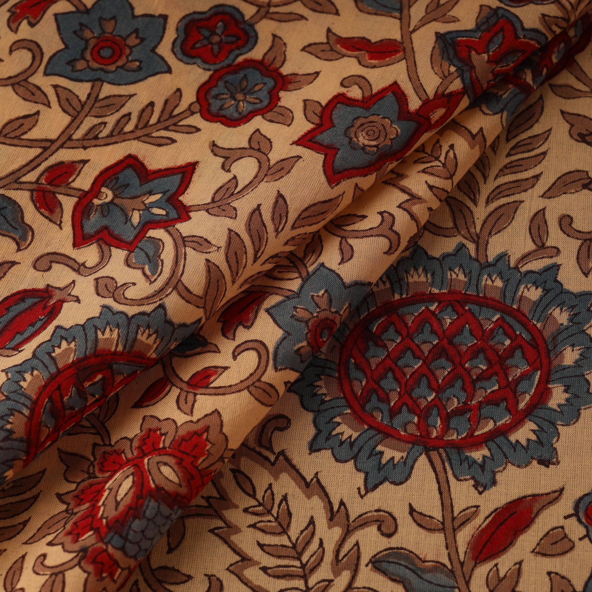 Sanganeri hand block print cotton fabric from Sanganer, Jaipur, Rajasthan by master artisans. This centuries-old printing technique has been practiced for over 500 years and is known for its fine detailing and delicate floral patterns. The designs are printed using traditional hand-carved wooden blocks and bleed-free VAT dyes. The breathable, lightweight cotton fabric is ideal for making kurtas, dresses, tunics, as well as home decor items like cushions and curtains.