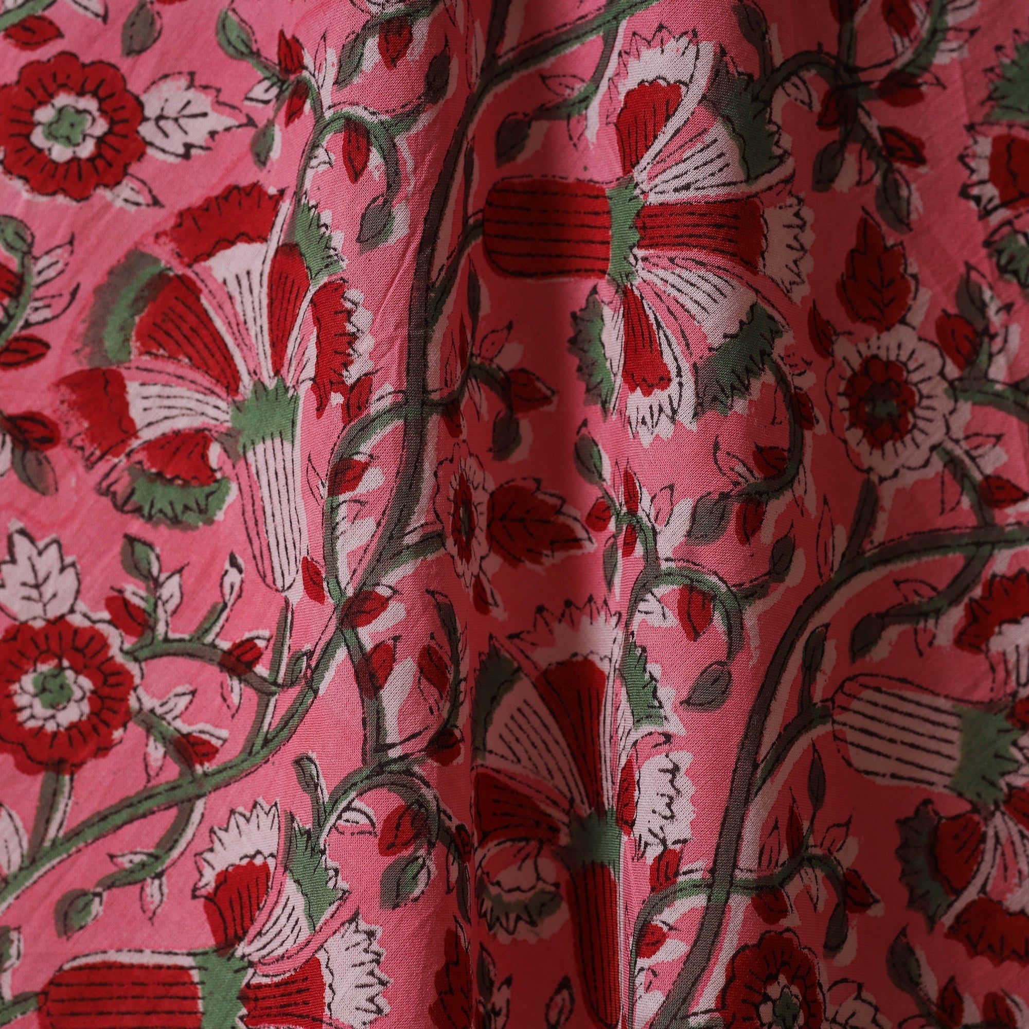 Pink - Cotton Hand Block Sanganeri Print Fabric 20