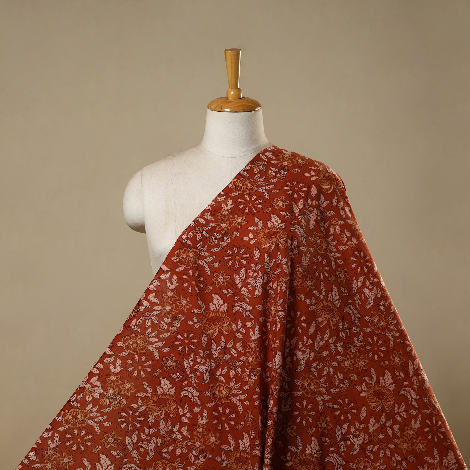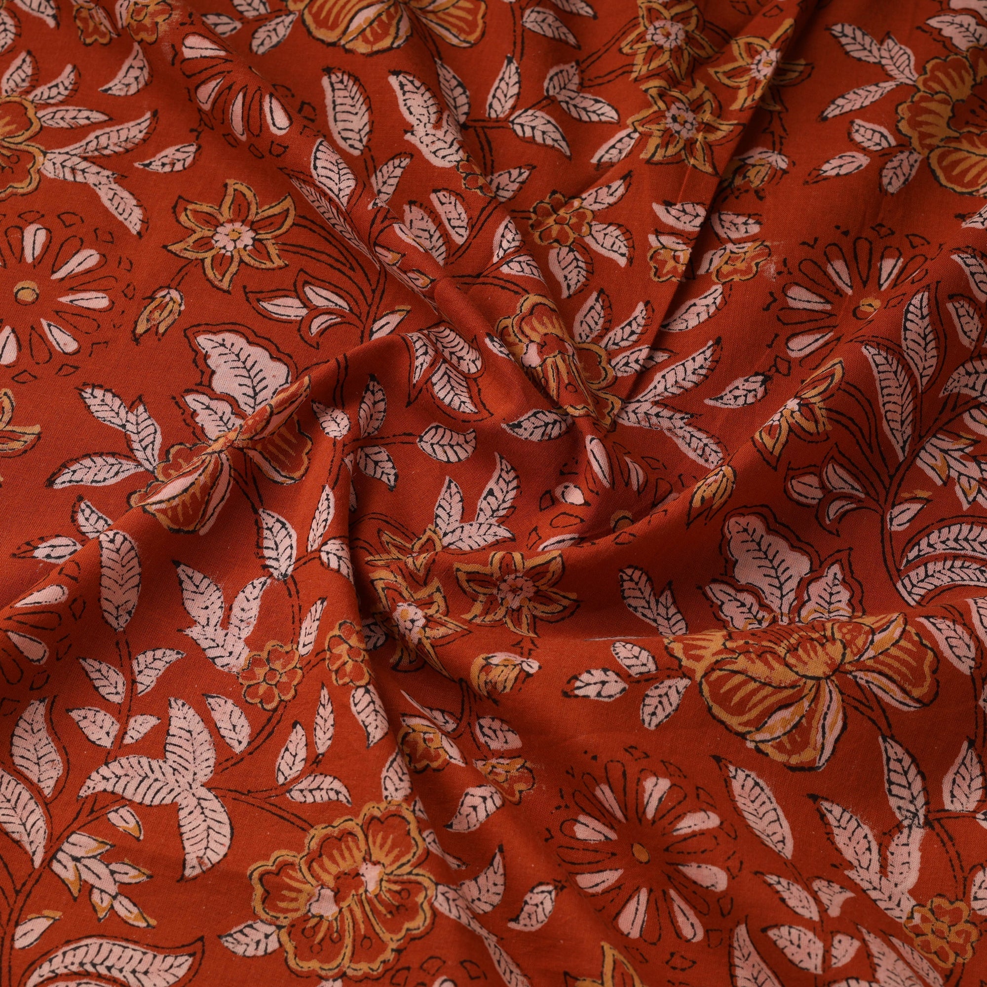 Red sanganeri hand block print cotton fabric from Sanganer, Jaipur, Rajasthan by master artisans. This centuries-old printing technique has been practiced for over 500 years and is known for its fine detailing and delicate floral patterns. The designs are printed using traditional hand-carved wooden blocks and bleed-free VAT dyes. The breathable, lightweight cotton fabric is ideal for making kurtas, dresses, tunics, as well as home decor items like cushions and curtains.