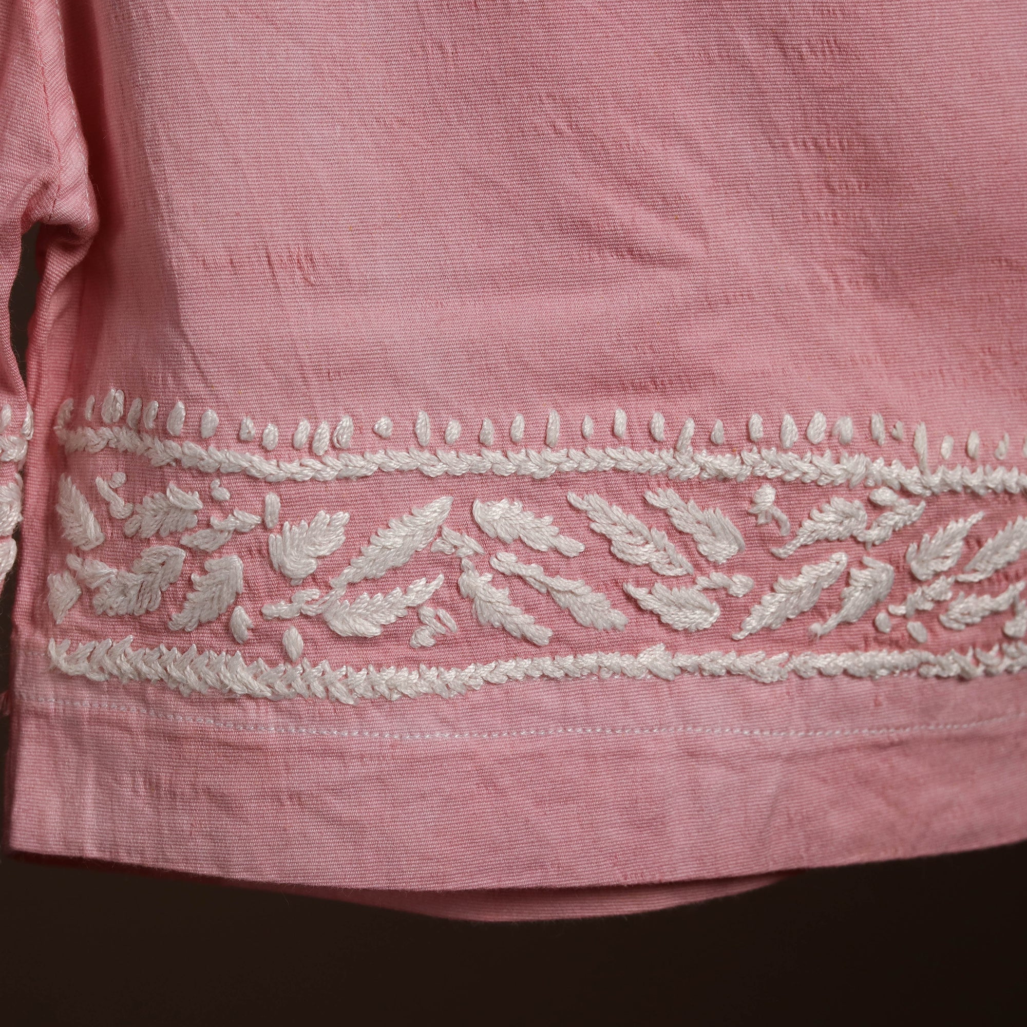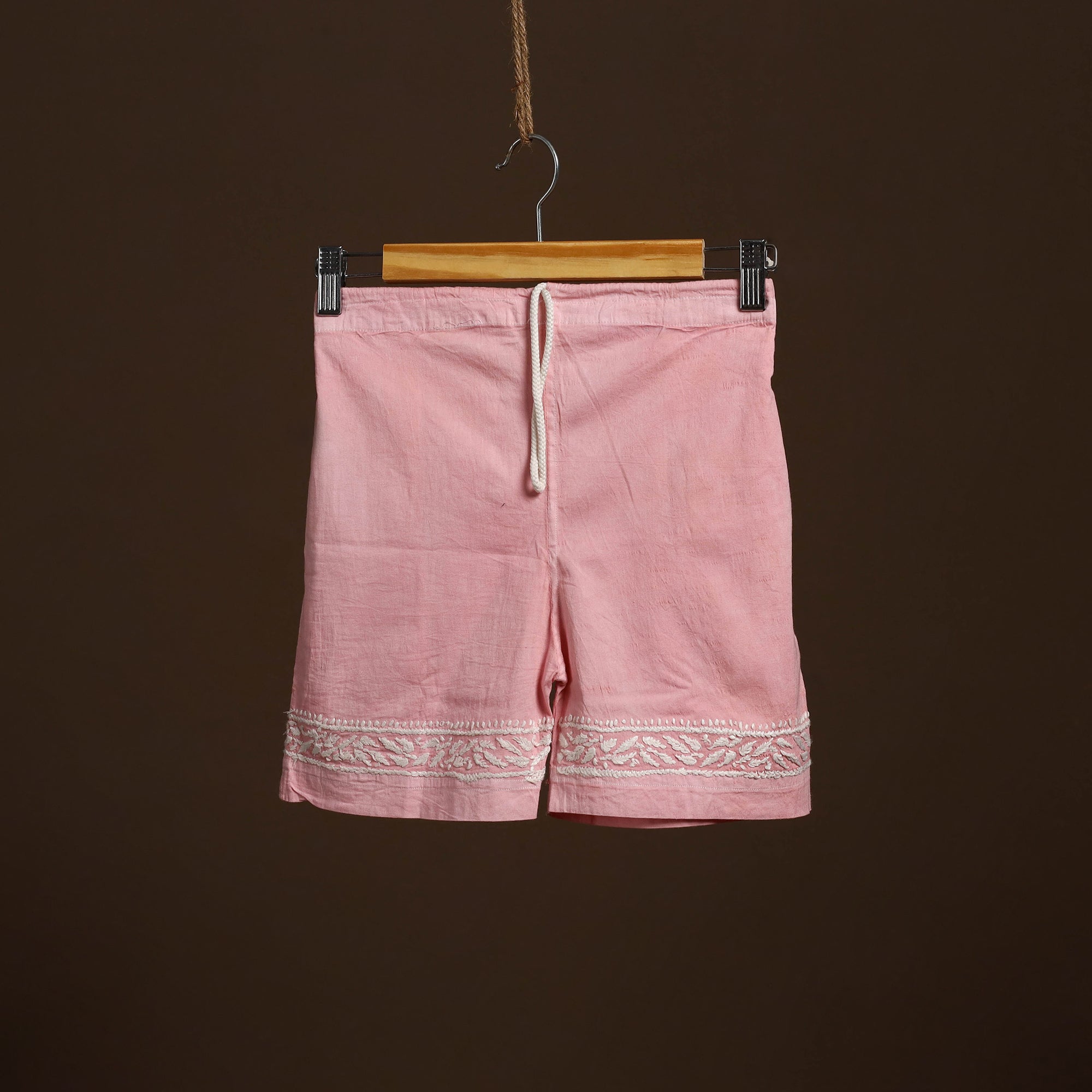 This pink cotton short features traditional chikankari hand embroidery from Lucknow, adding refined detailing to a casual essential. Made from soft, durable cotton, it includes a comfortable inner waistband and a side pocket for everyday convenience. Perfect for relaxed days or casual outings.