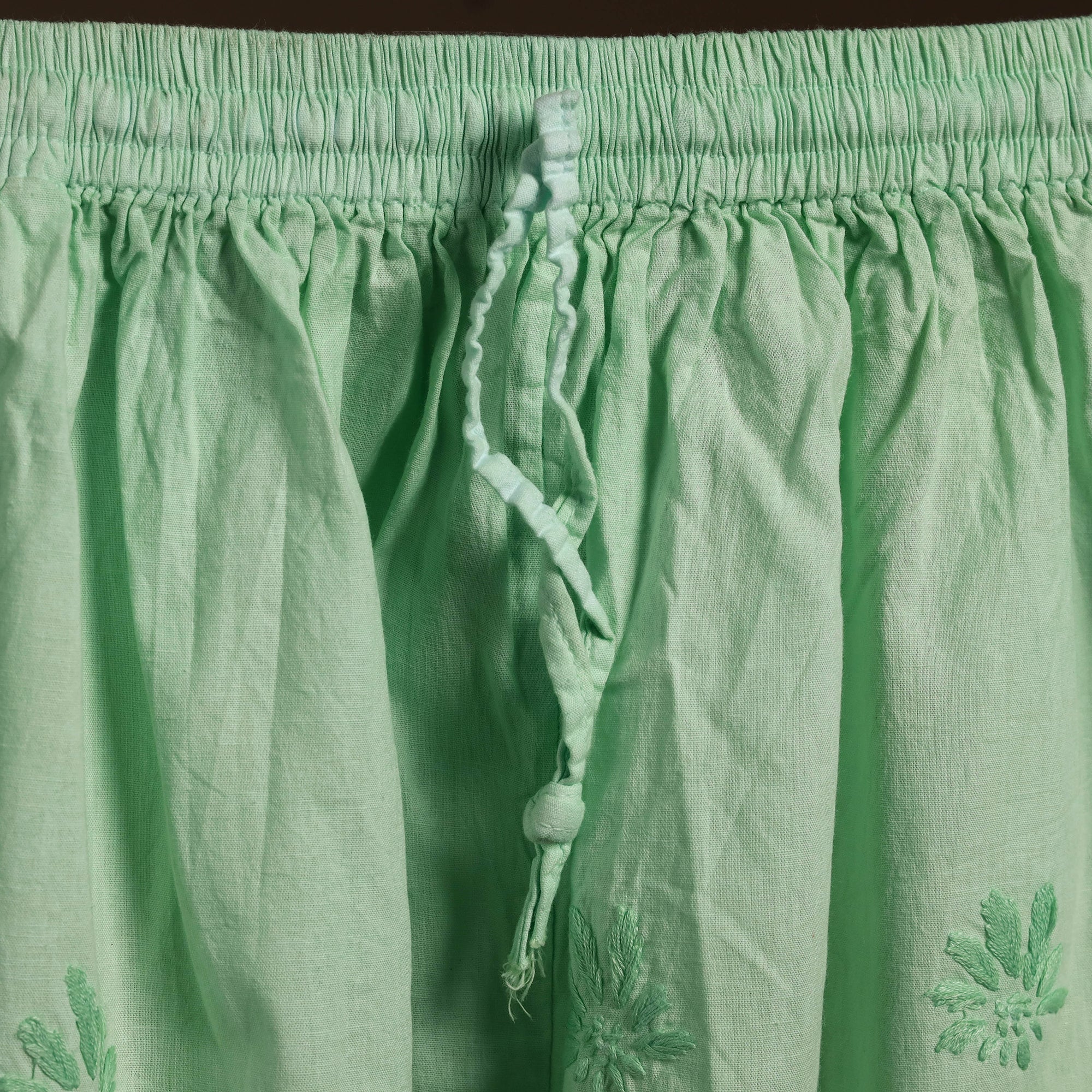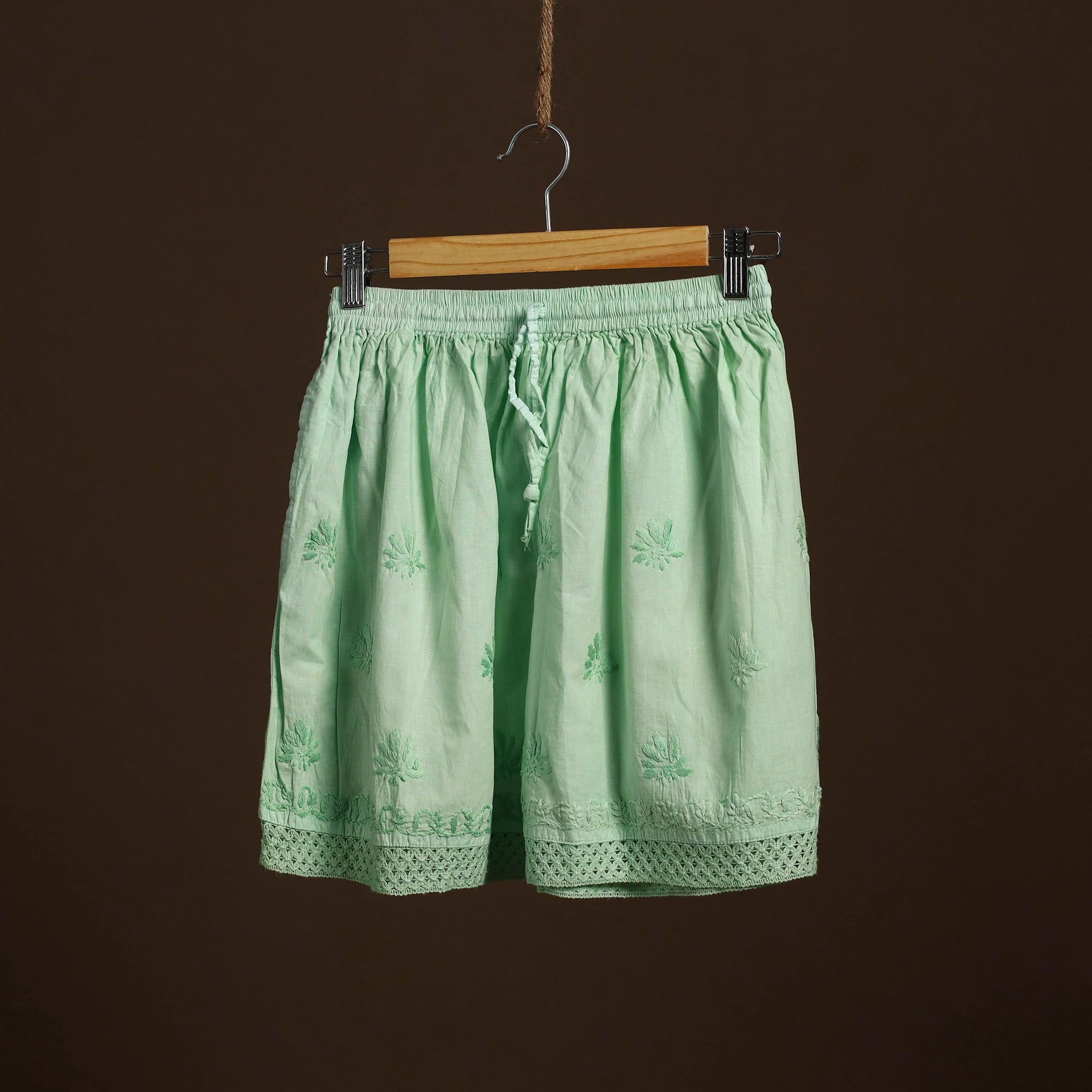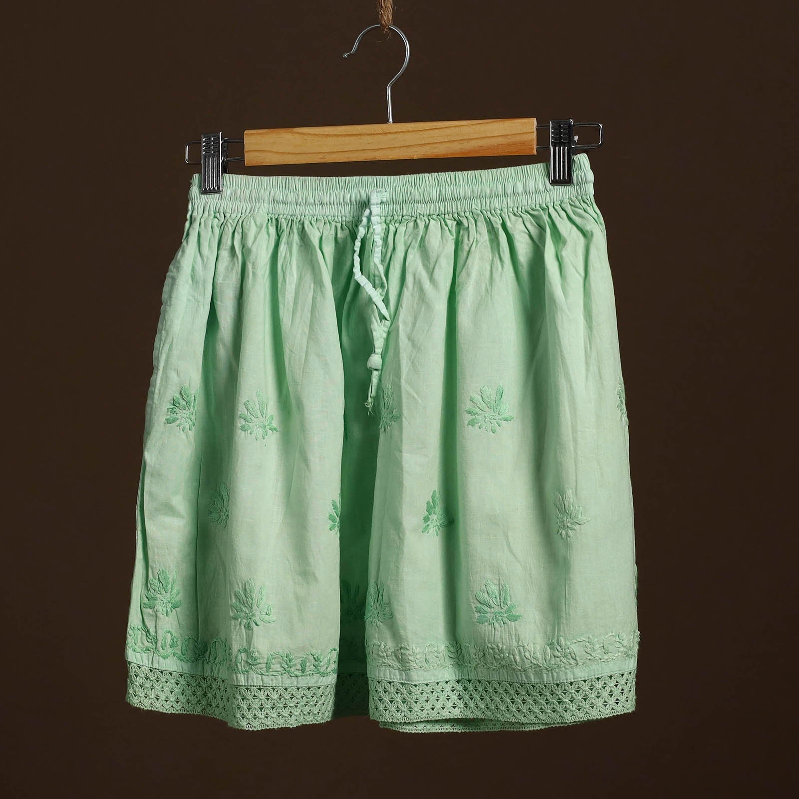 This green cotton short features traditional chikankari hand embroidery from Lucknow, adding refined detailing to a casual essential. Made from soft, durable cotton, it includes a comfortable inner waistband and a side pocket for everyday convenience. Perfect for relaxed days or casual outings.