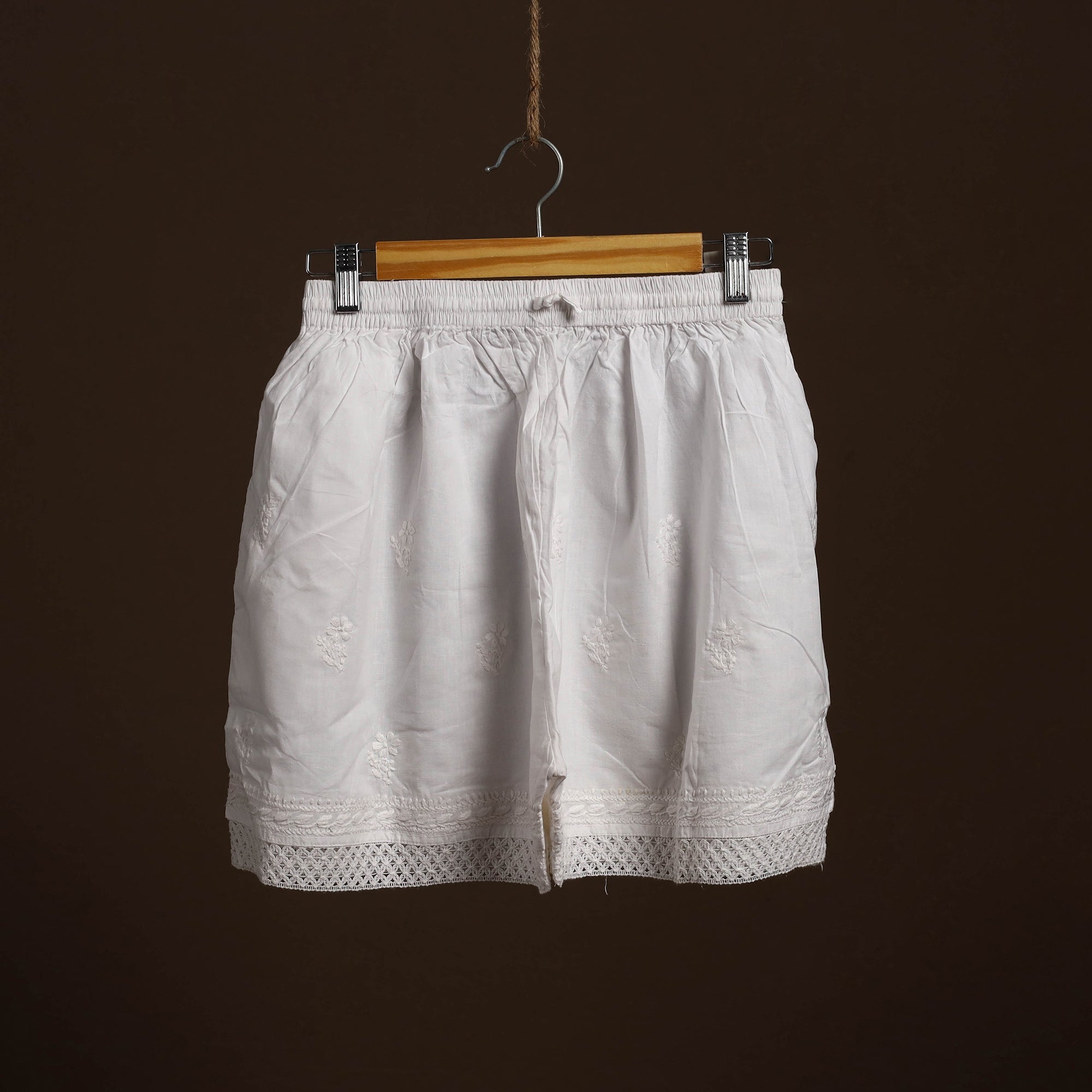 | Material | This white cotton short features traditional chikankari hand embroidery from Lucknow, adding refined detailing to a casual essential. Made from soft, durable cotton, it includes a comfortable inner waistband and a side pocket for everyday convenience. Perfect for relaxed days or casual outings. |
