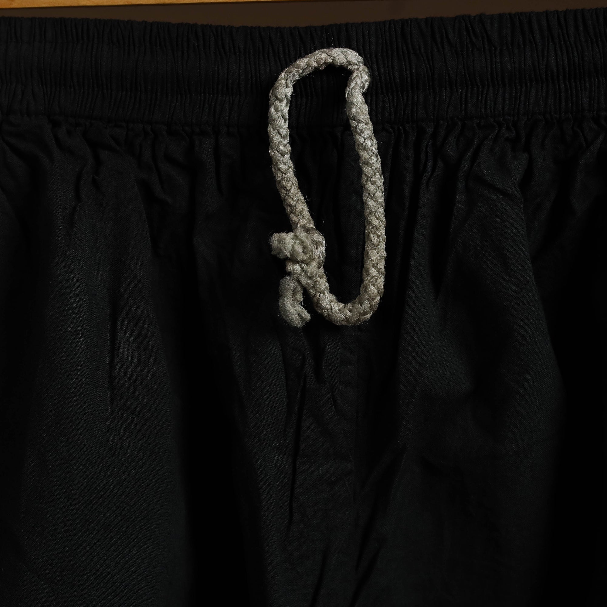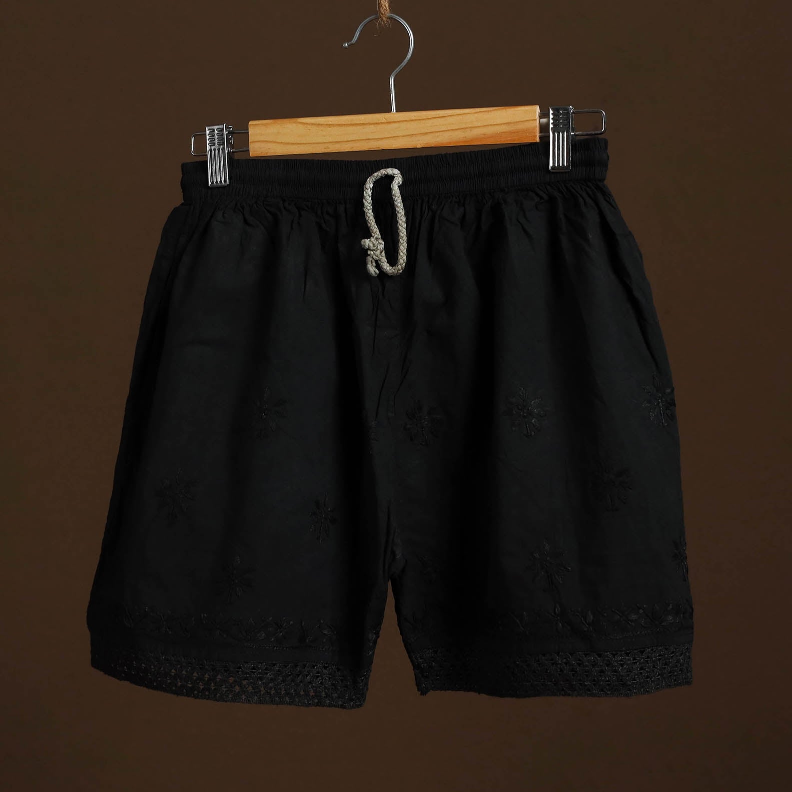 This black cotton short features traditional chikankari hand embroidery from Lucknow, adding refined detailing to a casual essential. Made from soft, durable cotton, it includes a comfortable inner waistband and a side pocket for everyday convenience. Perfect for relaxed days or casual outings.
