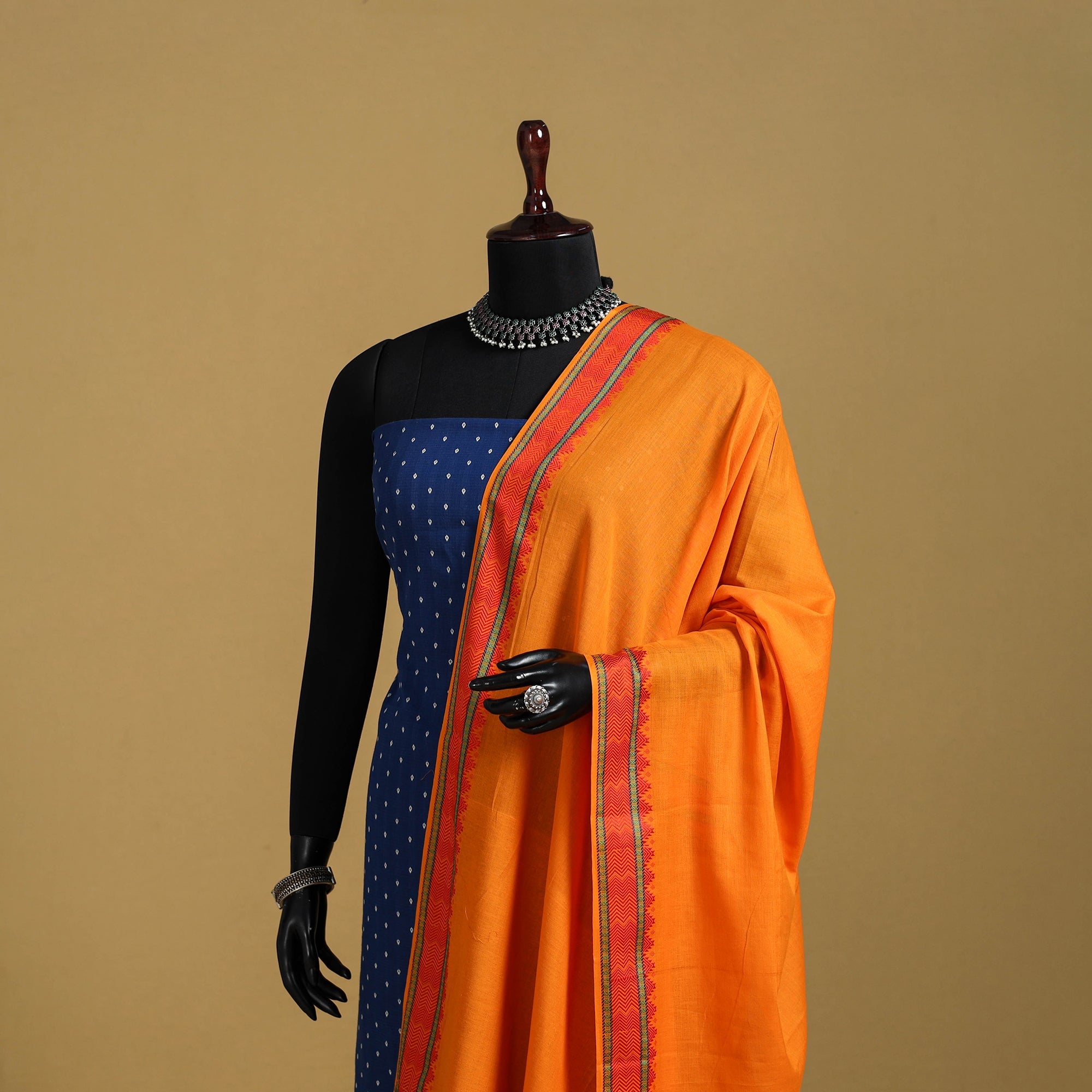 This orange cotton jacquard dupatta with thread border beautifully blends tradition with everyday elegance. Woven on jacquard looms, showcasing the finesse of this weaving technique. A finely detailed thread border enhances the design, adding subtle charm and durability. Lightweight yet graceful, this dupatta pairs effortlessly with both ethnic and contemporary outfits, making it a versatile addition to your wardrobe.