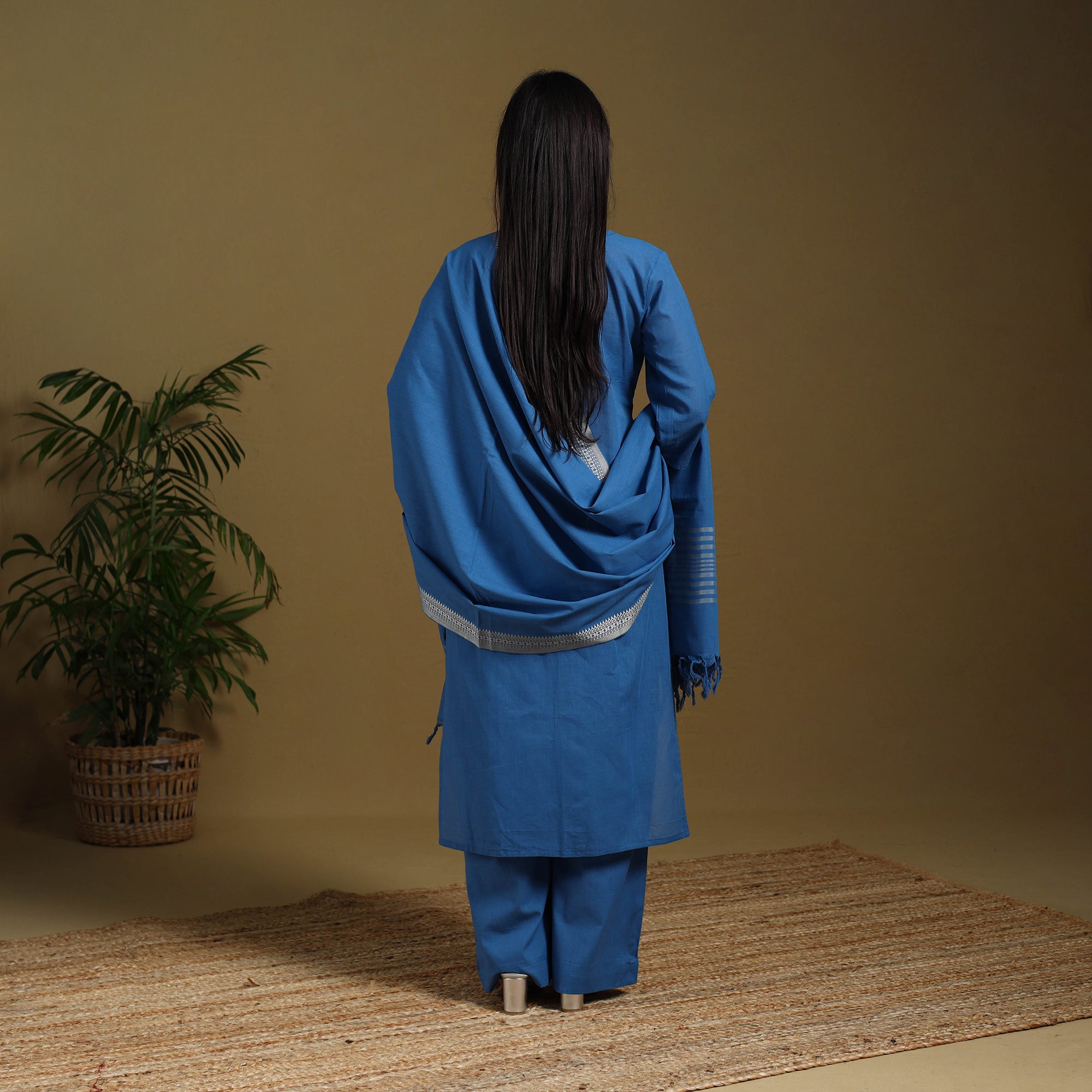 • Blue - cotton jacquard kurta set (set of 3) 04 - handcrafted