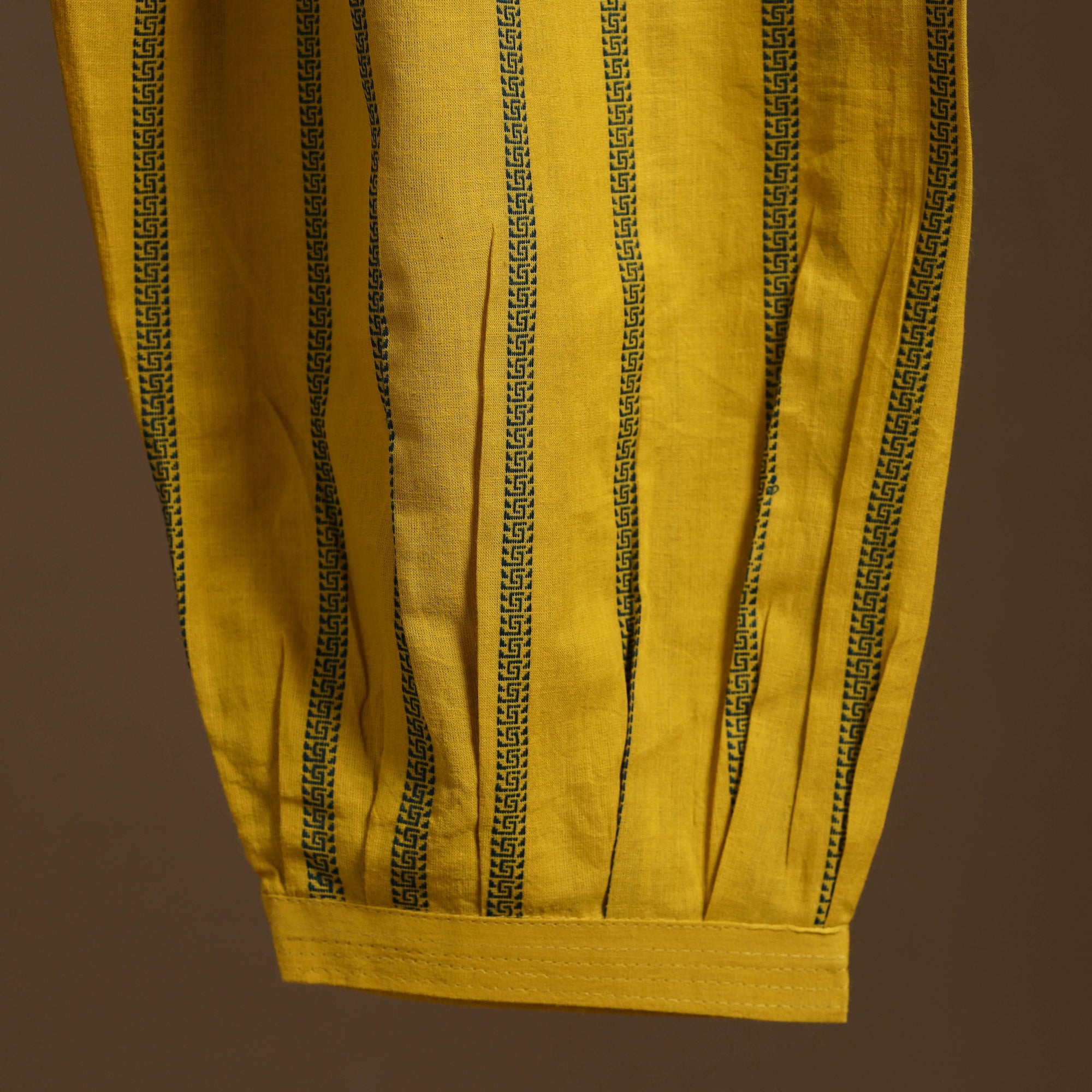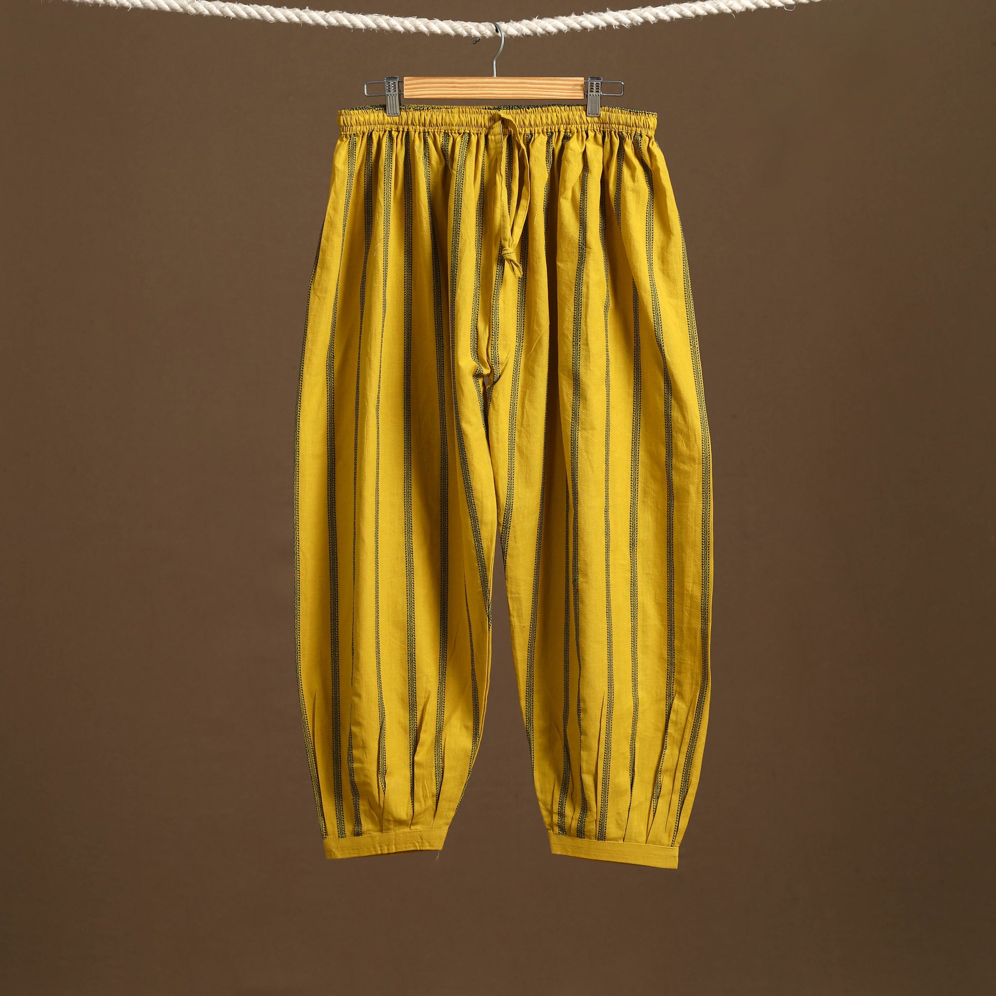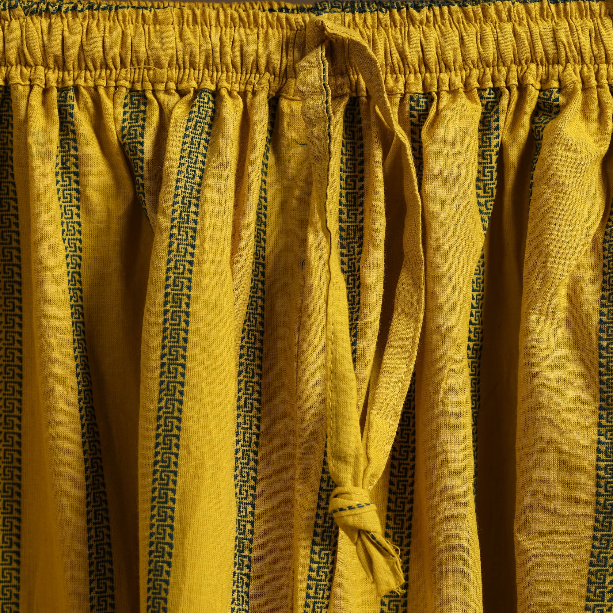 This yellow cotton jacquard afghani salwar is designed for everyday comfort. It features an elasticated waistband with a drawstring for ease. The breathable fabric and relaxed, flowy fit keep you comfortable all day. Easy to pair with different tops and accessories, it’s a versatile choice for casual outings and stylish everyday looks.