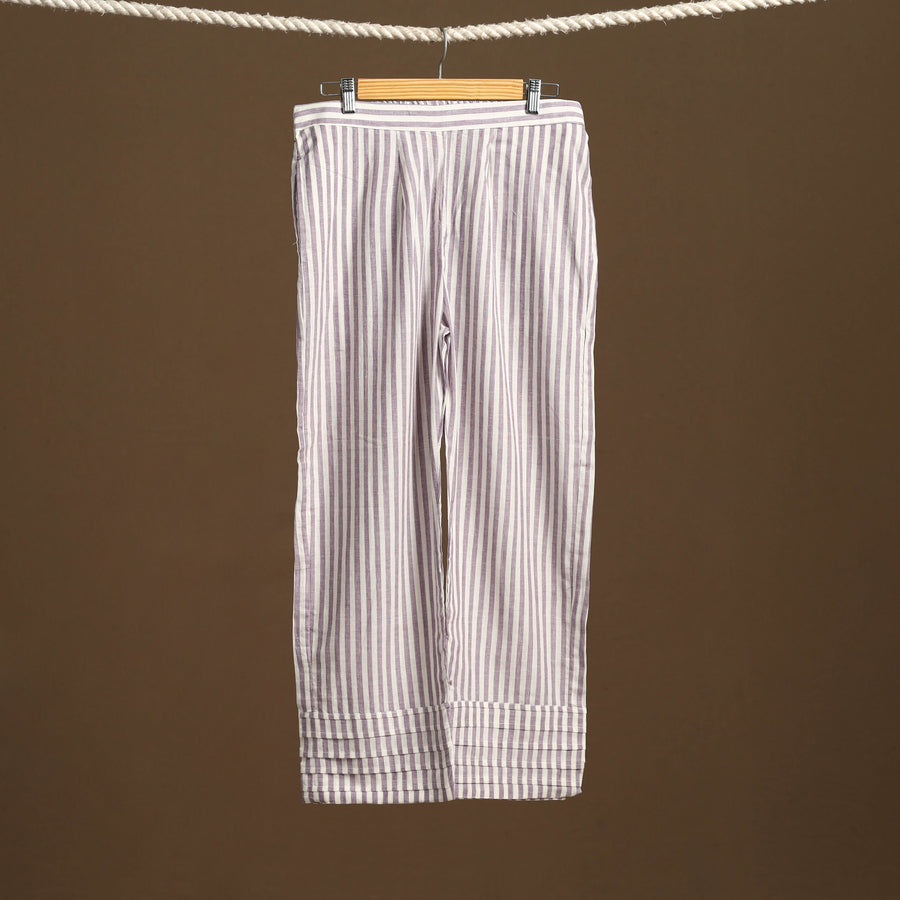 This purple cotton jacquard palazzo is perfect for everyday wear. It features an elasticated waistband and two side pockets for added comfort. Crafted from breathable fabric, its relaxed, airy silhouette keeps you comfortable all day long. Easy to pair with different tops and accessories, it’s a versatile choice for casual outings and stylish looks.