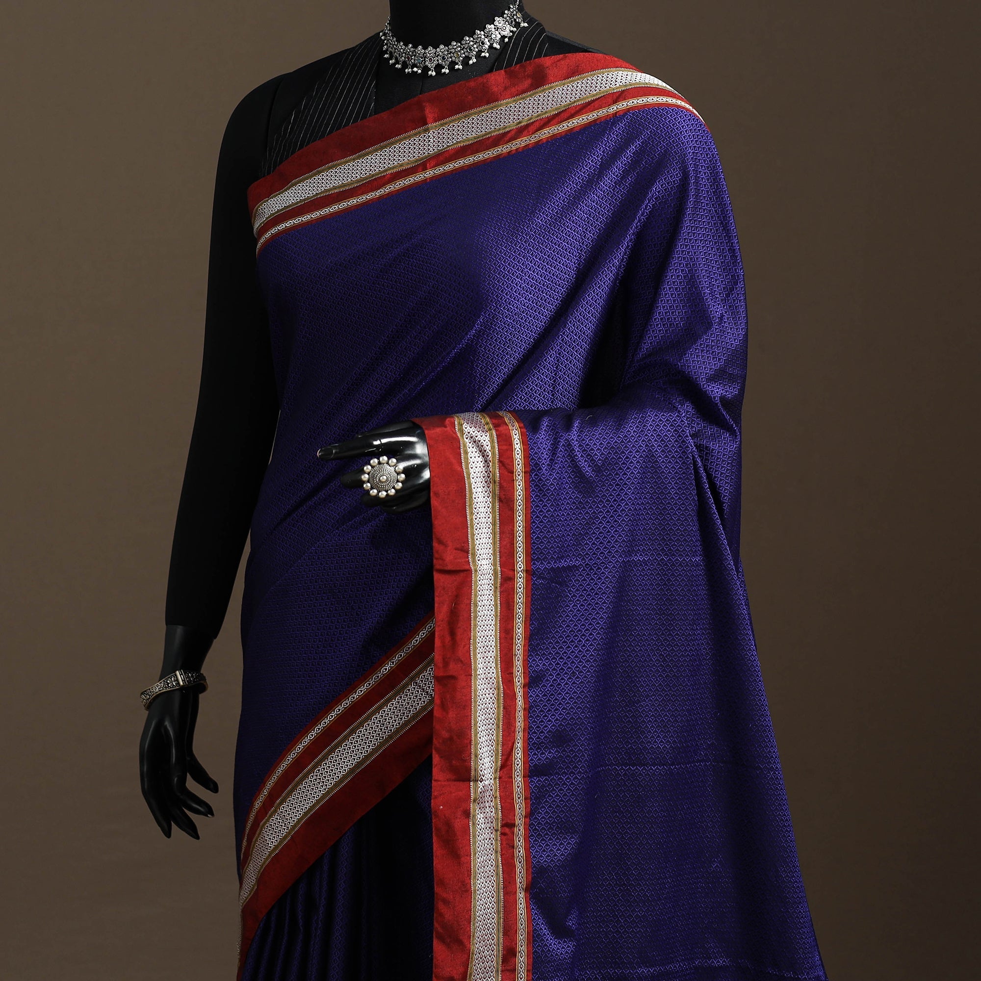 This beautiful blue khun saree from Karnataka blends tradition with modern charm. It features a soft cotton-nylon body and a vibrant poly-viscose pallu, finished with a chikki paras border. Khun sarees are now loved for their unique texture and colourful appeal perfect for festive occasions or elegant everyday wear.