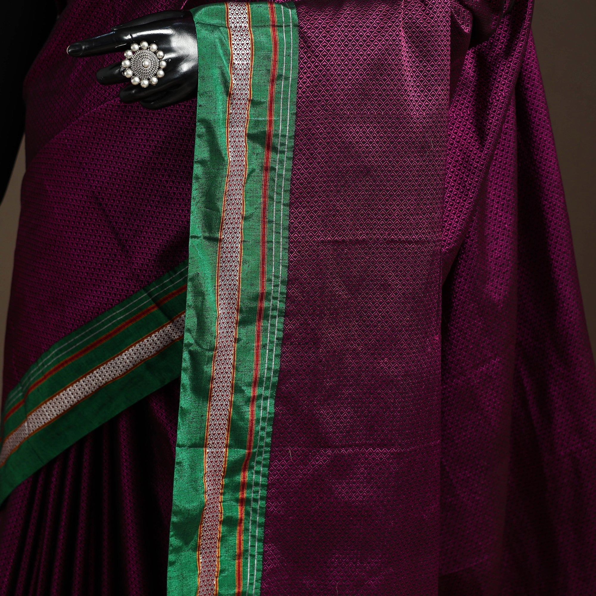 A real silk saree will have slight variations in texture uniformity, which are quite noticeable.