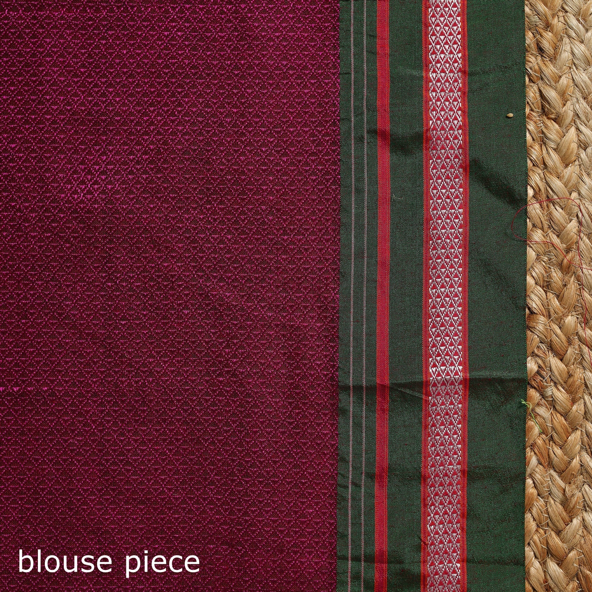 Khun is woven exclusively on a loom in Guledagudd, Bagalkot region, Karnataka. Used only for sari blouses, this handmade fabric is easily recognizable by its small white intricate motif and distinctive reddish-purple border.