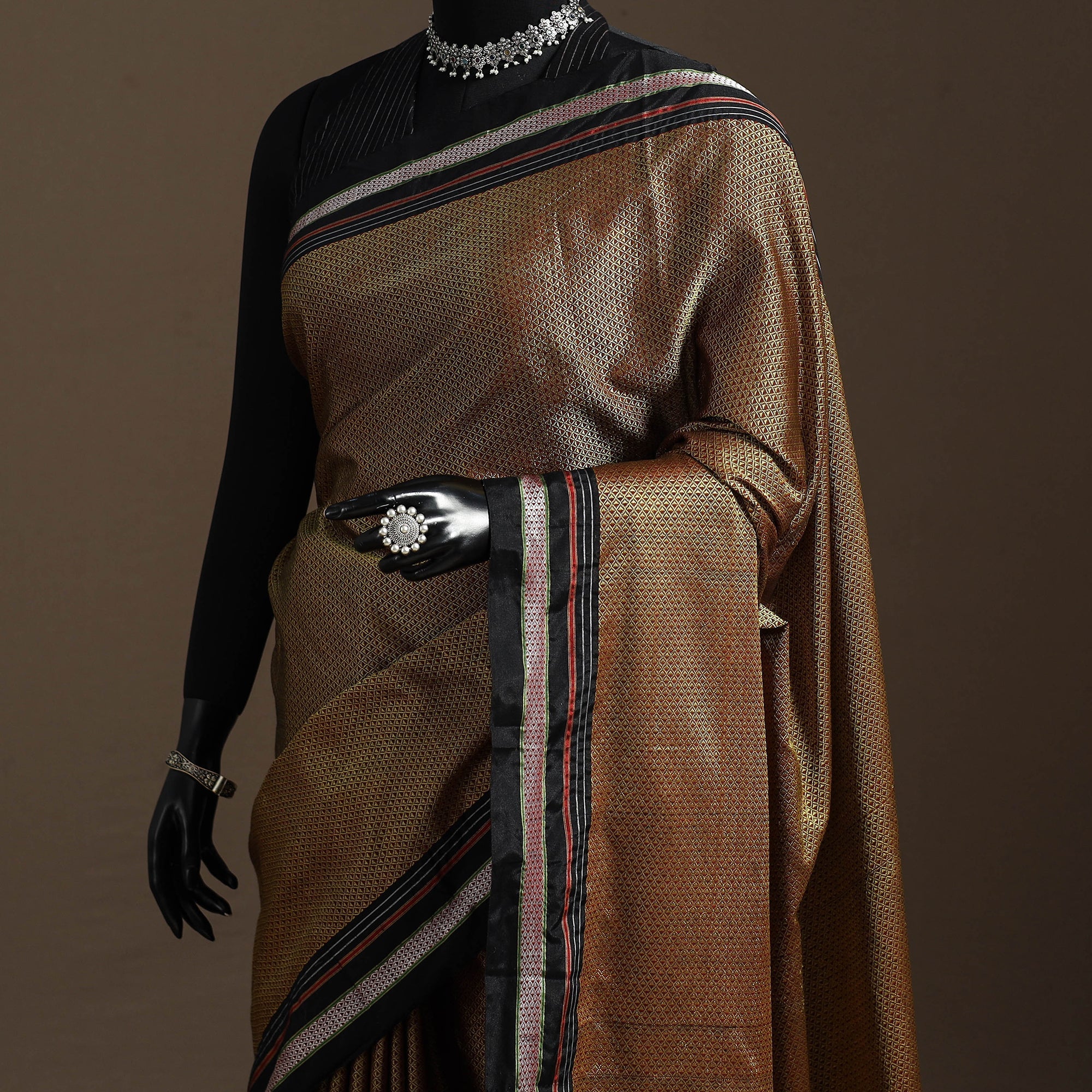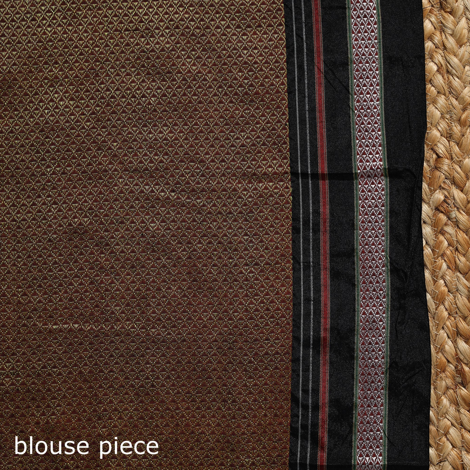 This beautiful brown khun saree from Karnataka blends tradition with modern charm. It features a soft cotton-nylon body and a vibrant poly-viscose pallu, finished with a chikki paras border. Khun sarees are now loved for their unique texture and colourful appeal perfect for festive occasions or elegant everyday wear.