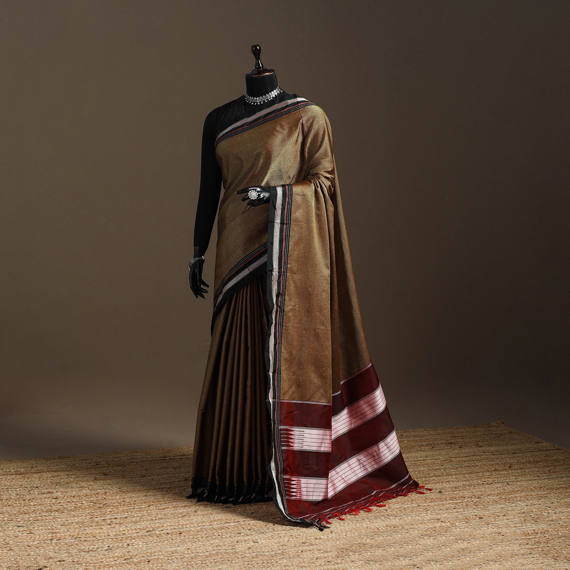 A real silk saree will have slight variations in texture uniformity, which are quite noticeable.