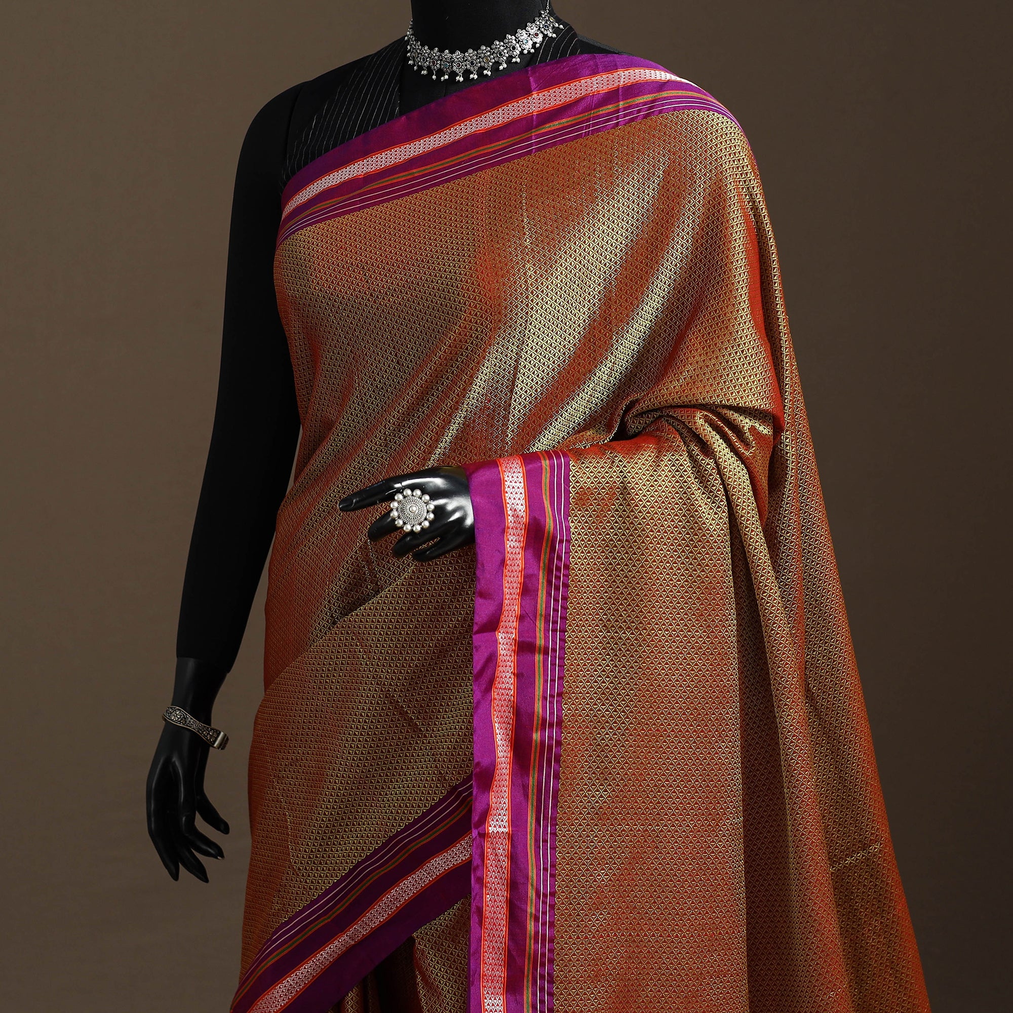 | Material | This beautiful khun saree from Karnataka blends tradition with modern charm. It features a soft cotton-nylon body and a vibrant poly-viscose pallu, finished with a chikki paras border. Khun sarees are now loved for their unique texture and colourful appeal perfect for festive occasions or elegant everyday wear. |