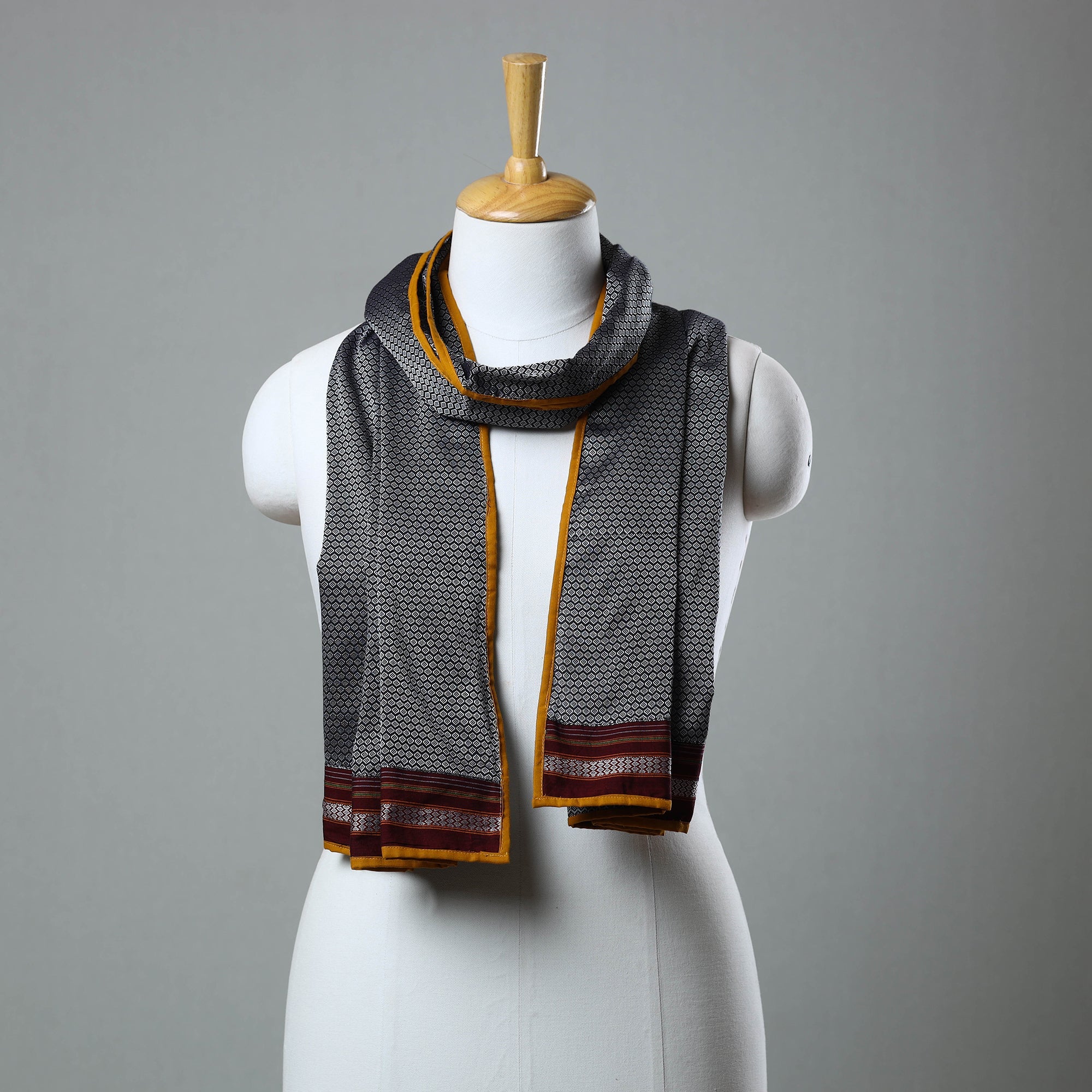Cotton grey khun weave stole, crafted with precision by skilled artisans. Known for its durability and distinctive patterns, khun weaving reflects a rich tradition. Lightweight and versatile its perfect for casual outings or semi-formal events, offering both style and comfort.