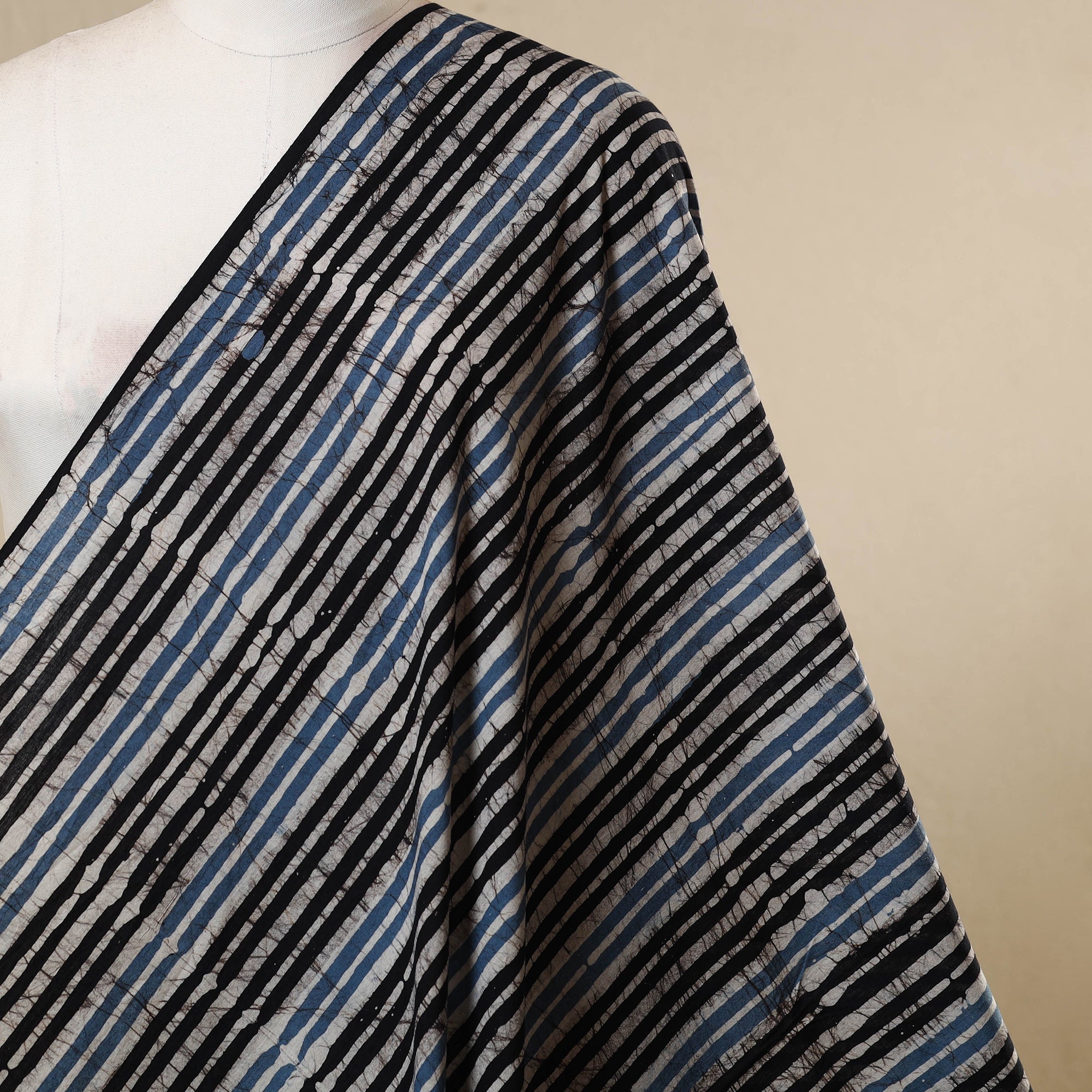 Elevate your creations with this black cotton batik print fabric, crafted by Shakil Ahmed Khatri from Kutch. Batik, the age-old wax-resist dyeing technique, lends the textile its layered textures and intricate motifs. Every yard reflects the heritage of Indian artisans, making it an ideal choice for distinctive apparel or elegant home décor projects.
