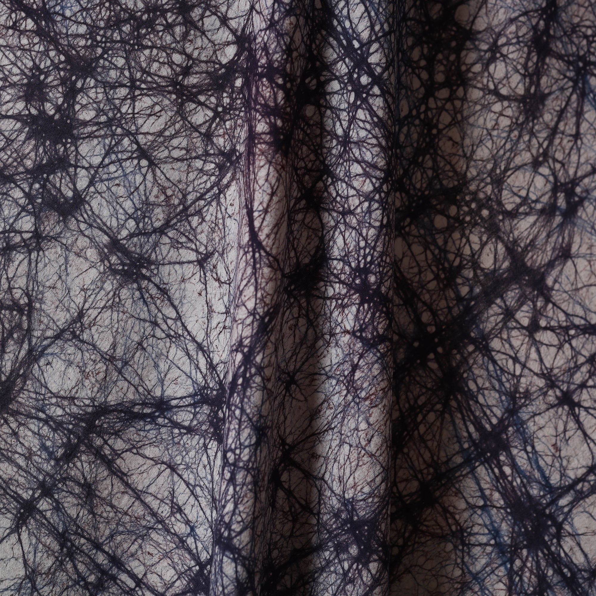 Elevate your creations with this black cotton batik print fabric, crafted by Shakil Ahmed Khatri from Kutch. Batik, the age-old wax-resist dyeing technique, lends the textile its layered textures and intricate motifs. Every yard reflects the heritage of Indian artisans, making it an ideal choice for distinctive apparel or elegant home décor projects.