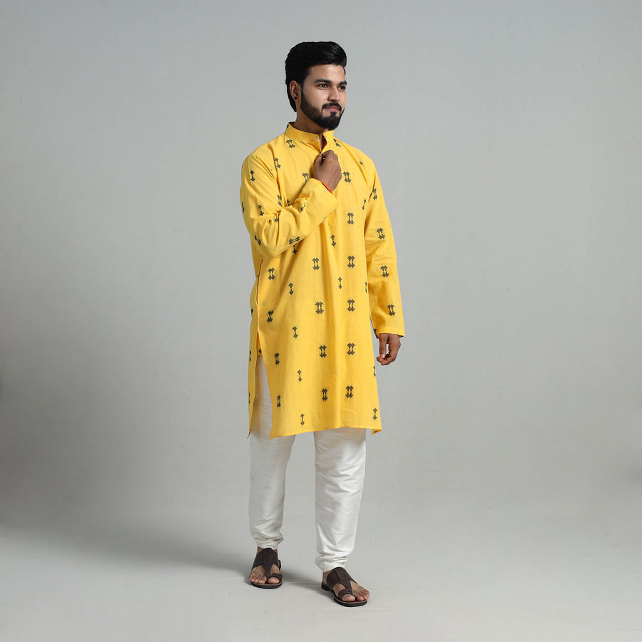 Step into elegance with cotton long jacquard kurta for men, a perfect blend of tradition and style. Handcrafted from jacquard fabric, this long kurta features full sleeves, a front button placket, and a chinese collar for a modern touch. With functional side pockets, it’s designed for comfort and practicality. Ideal for festive occasions or casual wear, this kurta celebrates India’s artisanal heritage.