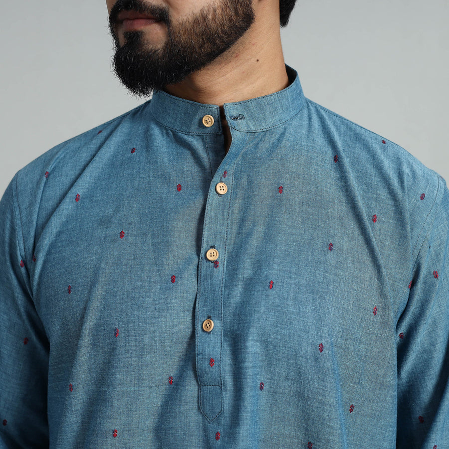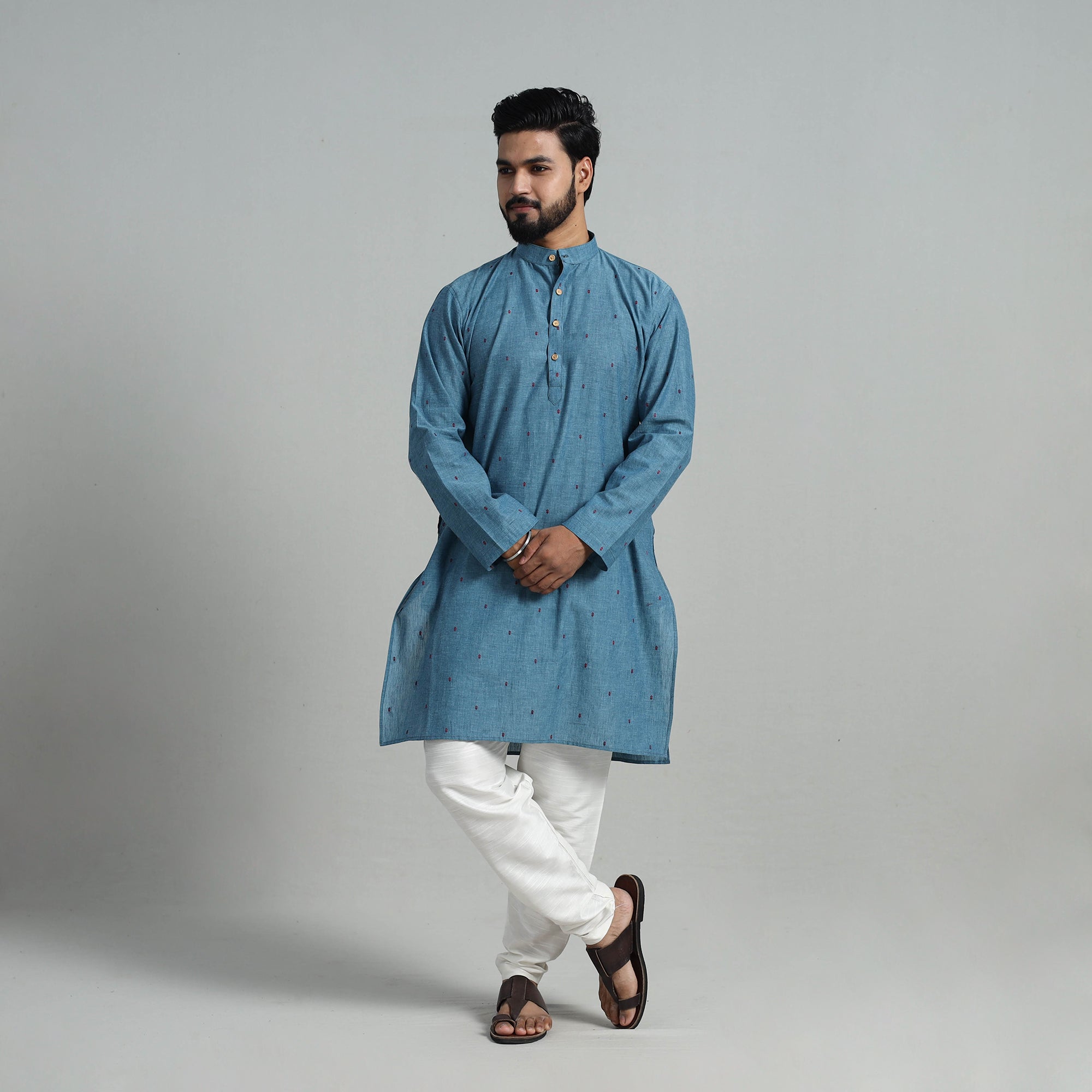 Step into elegance with cotton long jacquard kurta for men, a perfect blend of tradition and style. Handcrafted from jacquard fabric, this long kurta features full sleeves, a front button placket, and a chinese collar for a modern touch. With functional side pockets, it’s designed for comfort and practicality. Ideal for festive occasions or casual wear, this kurta celebrates India’s artisanal heritage.