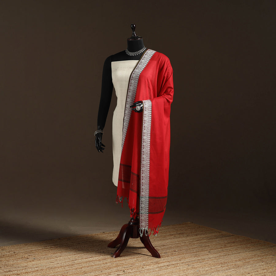 Plain pure cotton dupatta with woven thread border from Tamil Nadu. Its simple design makes it suitable for daily use and easy to pair with both casual and traditional outfits.