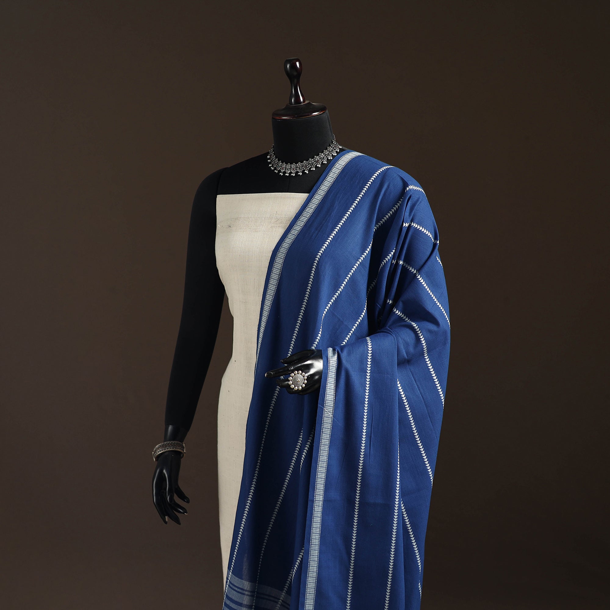 Plain pure cotton dupatta with woven thread border from Tamil Nadu. Its simple design makes it suitable for daily use and easy to pair with both casual and traditional outfits.