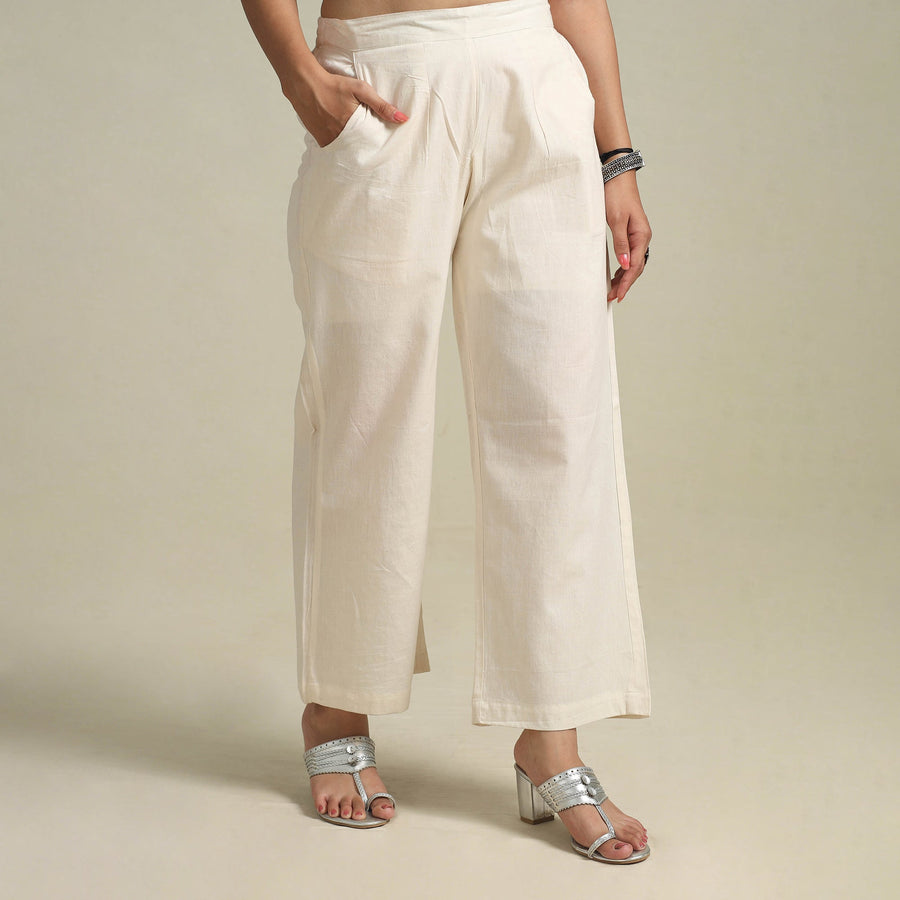 This white plain cotton palazzo is designed for everyday comfort and effortless pairing. Crafted from breathable cotton, it features an elasticated waistband, two side pockets, and a relaxed fit, perfect for pairing with kurtas, tunics, or tops. Ideal for casual outings, workwear, or simply lounging at home.