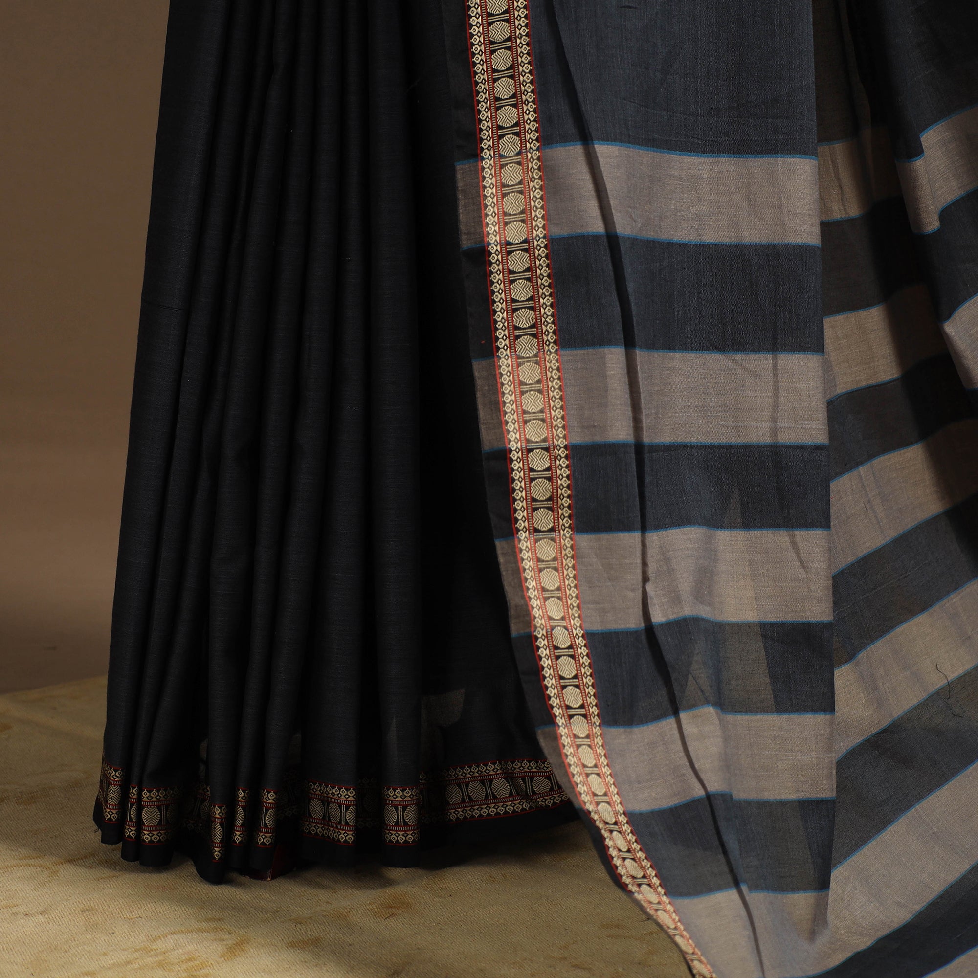 A real silk saree will have slight variations in texture uniformity, which are quite noticeable.