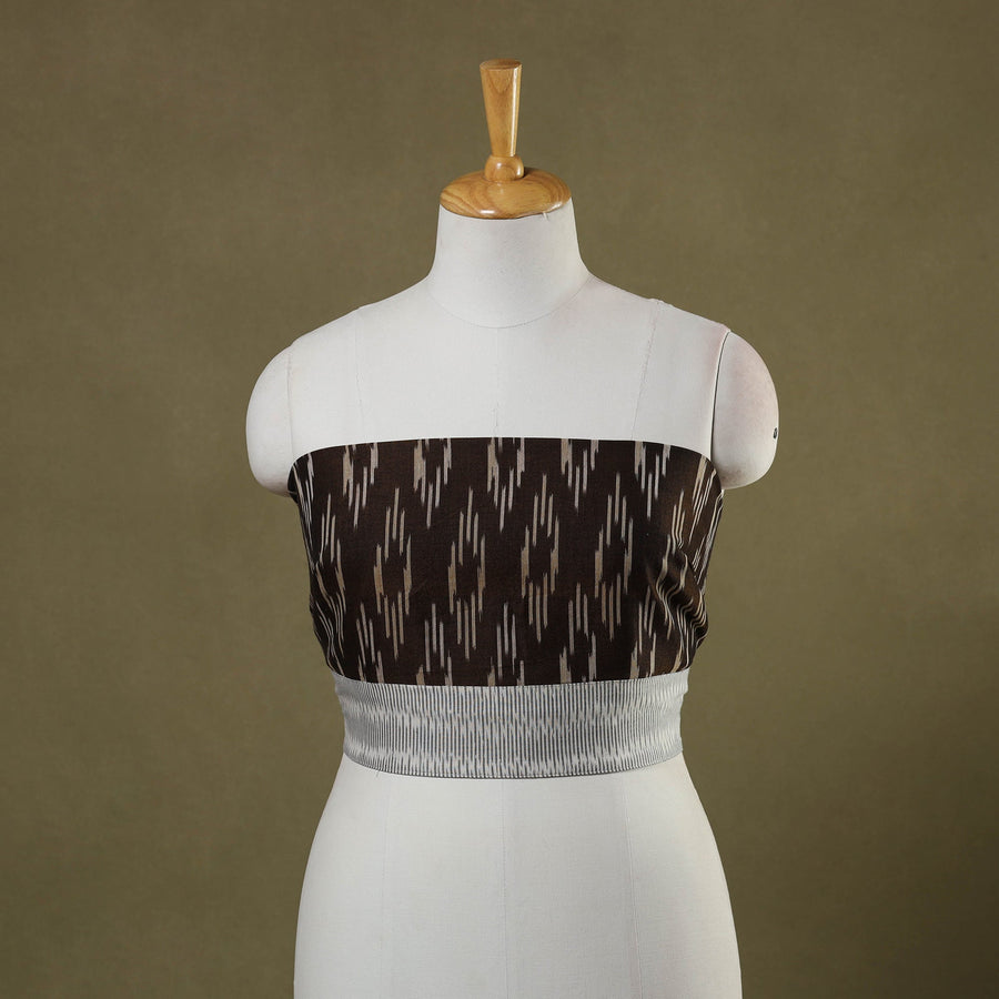 This brown handcrafted blouse piece, made from cotton fabric, features a pochampally Ikat weave, offering a beautiful blend of traditional artistry and everyday comfort. Ideal for pairing with sarees, it’s perfect for creating stylish blouses for both casual and festive occasions.